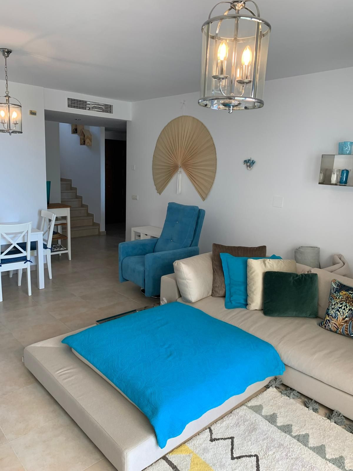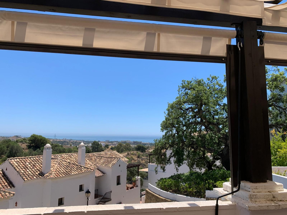 Discover this exceptional duplex penthouse in the charming Andalusian-style village of Pueblo Altos de Los Monteros, offering spectacular panoramic sea views from both levels.