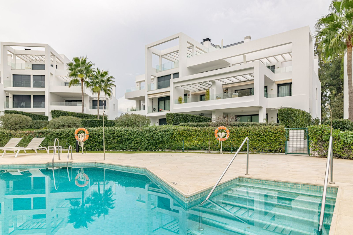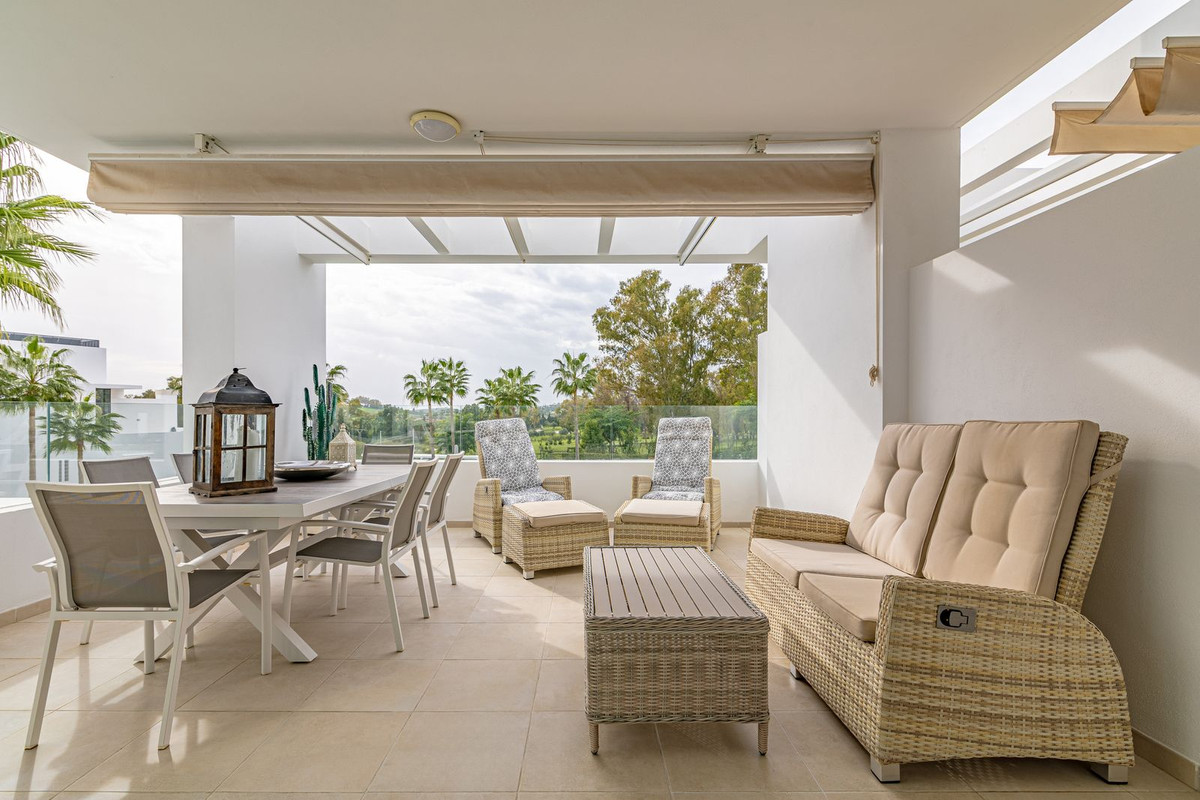 This stunning 2 bedroom apartment is located in the exclusive Las Terrazas de Atalaya development in Estepona, Malaga. Situated in a gated community, this modern and contemporary property offers luxury living with beautiful golf views.