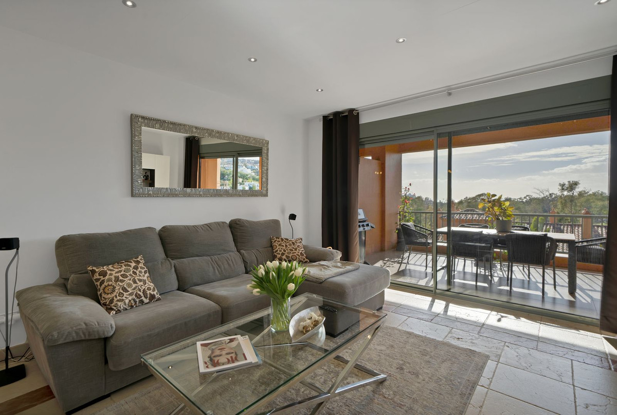 This 2-bedroom, 2-bathroom apartment is being offered for sale for the very first time since it was built. It is ideally positioned in one of the best blocks of the complex, ensuring total privacy and truly breathtaking panoramic views. From the terrace, you can enjoy sweeping vistas of the Mediterranean Sea, Africa, Gibraltar, Atalaya Golf, and the surrounding hills. With its west-facing orientation, the apartment benefits from abundant natural light throughout the afternoon and unforgettable sunsets.