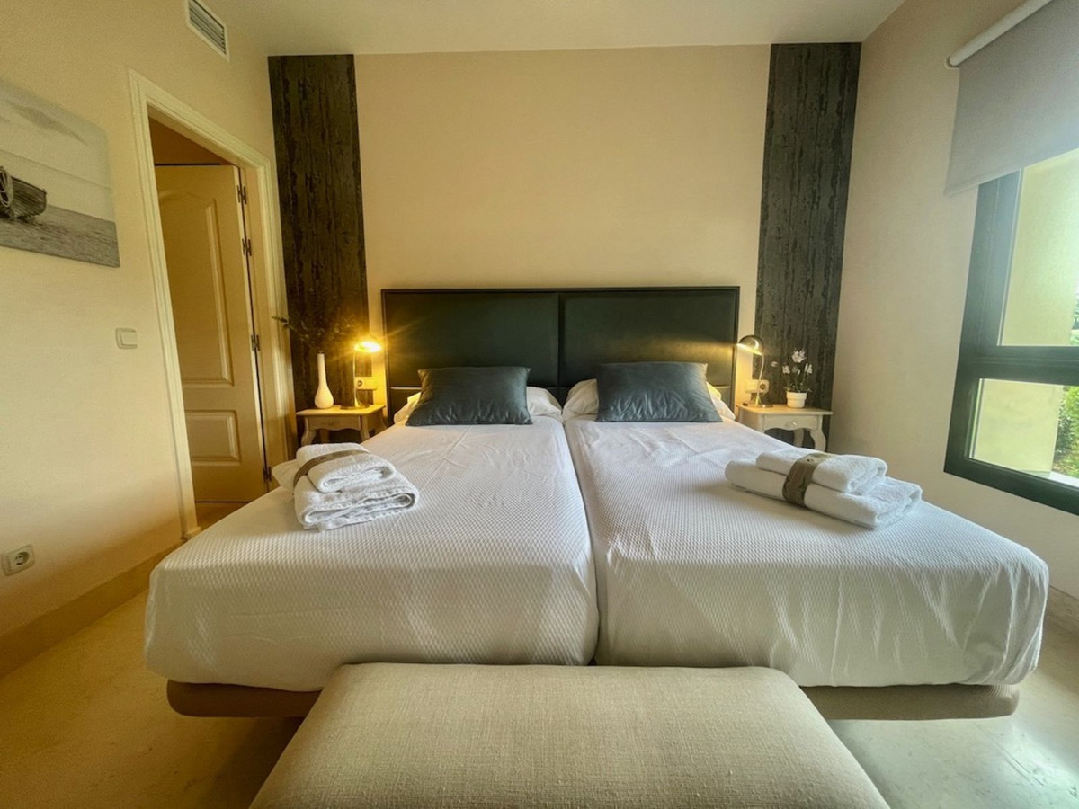 Beautiful 2 bedroom apartment located in Capanes del Golf, Benahavis a popular urbanisation due to location and the size of the living space. This apartment get the sun on the terrace from morning until evening thanks to the orientation. One of the small outside pools is easily accessible from this block. On site there are 5 outdoor pools and an inside spa pool with gym, sauna and steam room. Located on the first floor this unit has views to the gardens and golf. It´s perfect for those who want a holiday home or want a home for long term living. There is 24 hour security and a community office onsite. There are two parking spaces with this property which is why the price is slightly higher as normally a 2 bed unit only comes with one parking space. Contact us now to view!