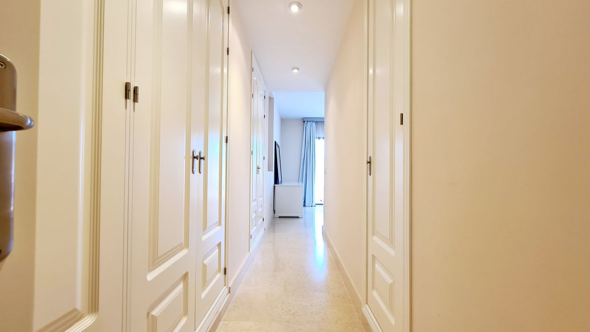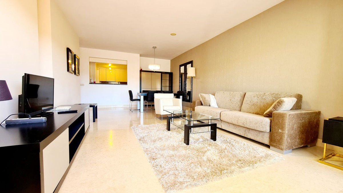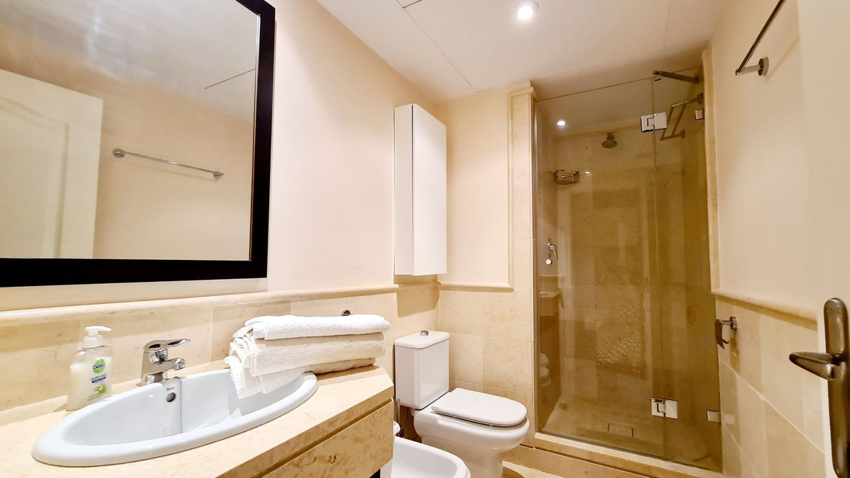 Beautiful and spacious 2 bedroom apartment located in the five star urbanisation of Capanes Del Golf, Benahavis. This apartment enjoys wonderful golf, lake and mountain views. The kitchen has been made open plan into the lounge. This apartment can very easily be converted into a 3 bedroom if you so wish as there is plenty of space to do this change. Both the master bedroom and second bedroom have en suite bathrooms. The property enjoys a large terrace to enjoy the morning sun. You will enjoy beautiful sunsets from this terrace. There is one storeroom and one parking space in the garage.