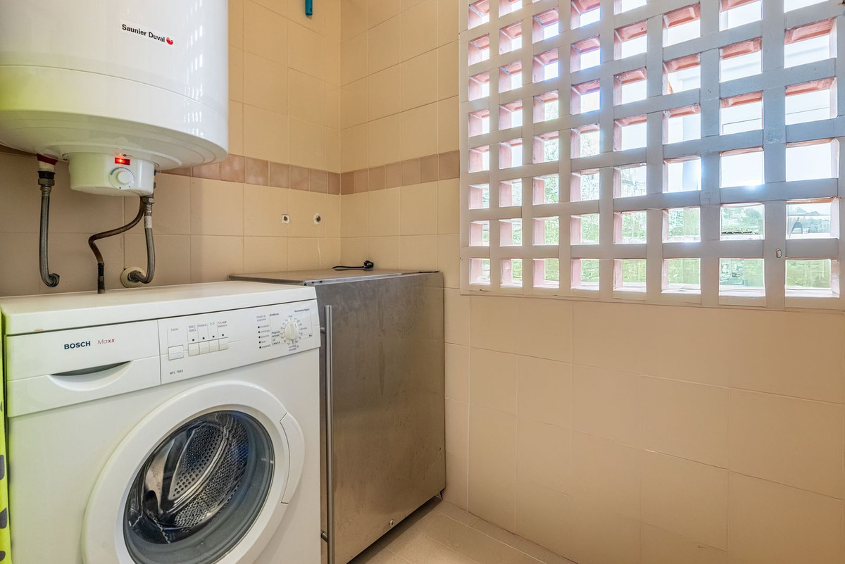 The property boasts a generous 42 m² terrace, partly covered for year-round use, and a private garden of around 50 m², creating an inviting space for outdoor dining, sunbathing, or simply relaxing while taking in the stunning views. Facing southwest, the terrace and garden enjoy long afternoon sun and sweeping vistas over the coast, stretching all the way to Gibraltar and the mountains of Africa.
