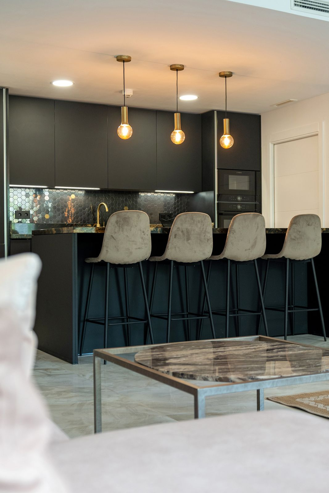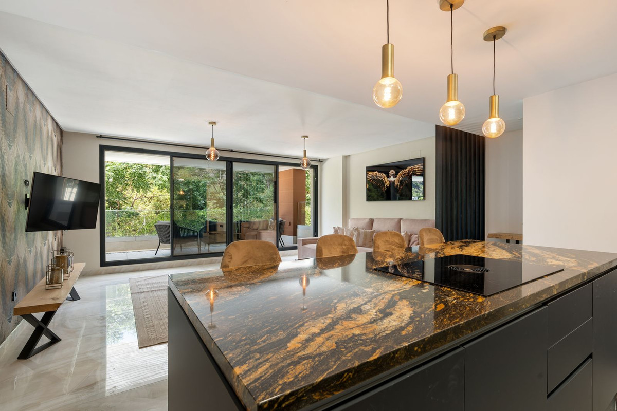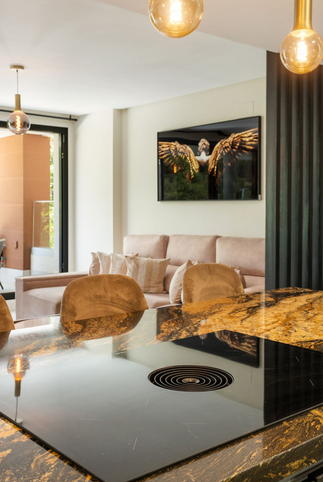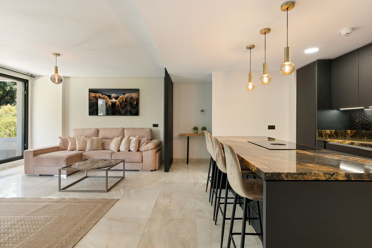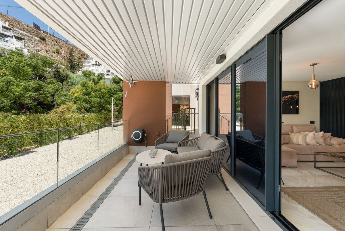 This brand new (2020 build), modern 3-bedroom, 2-bathroom apartment is situated in the luxury complex of Alborada Homes with an elevator. It´s situated in Benahavis with good road access to San Pedro de Alcantara, Puerto Banus and the AP-7 and A7. At a couple of minutes drive you will reach Monte Halcones, where you find a supermarket, pharmacy and various restaurants. The property has a stylish modern black kitchen with Bosch equipment. From the big sunny terrace, you will have lovely green views of the mountain. One parking space is included, as is a storage room. This beautifully maintained complex offers a decked pool area with sun loungers, parasols and a disabled chair into the pool. The secure, gated community offers garage parking and a gym.