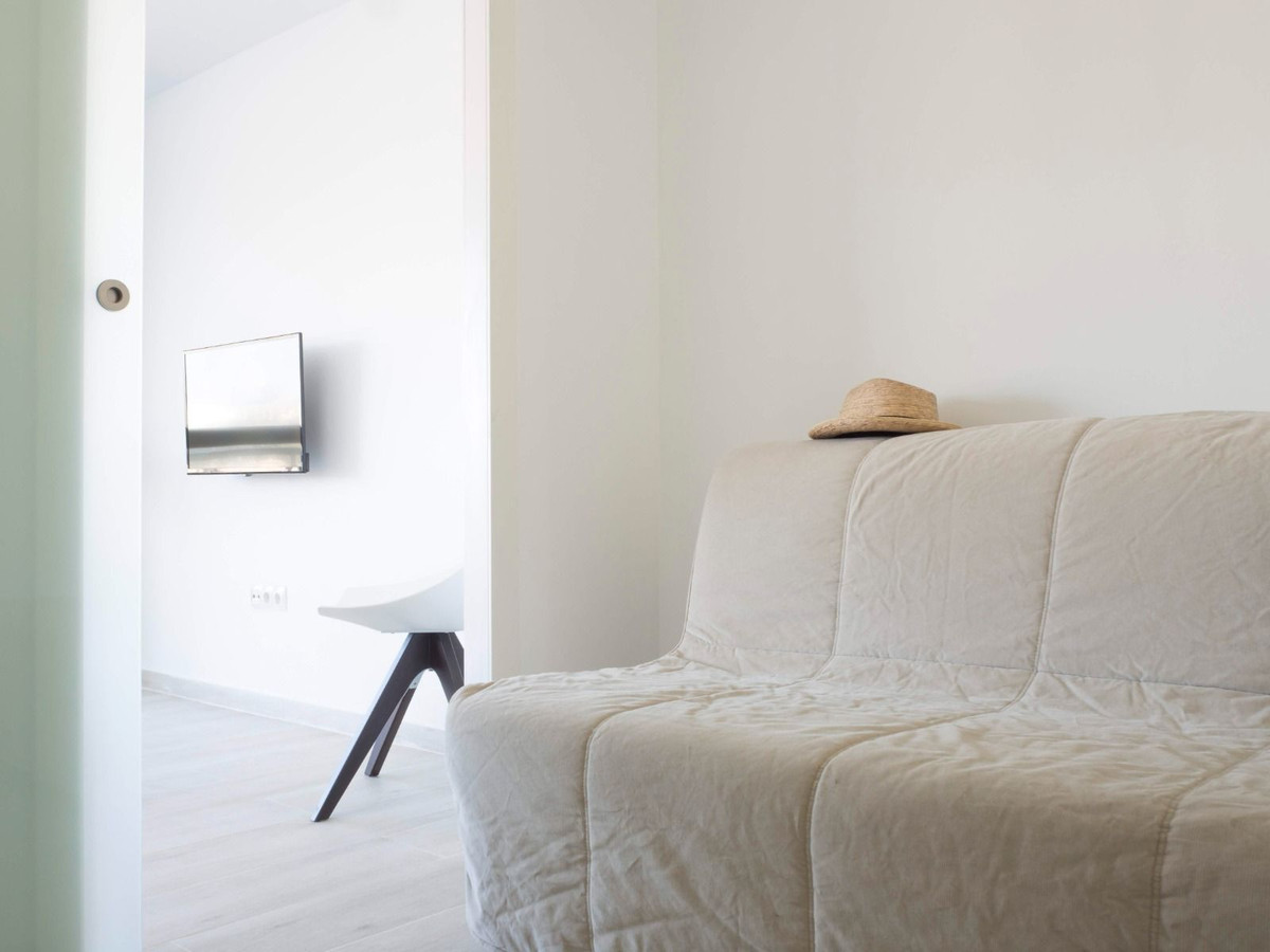 Discover this stunning, recently reformed apartment in the prestigious Cortijo Blanco area of San Pedro de Alcántara, Marbella – an exclusive enclave known for its serene beachside living and proximity to world-class amenities. Spanning 60 m² on the top (3rd) floor, this luminous 2-bedroom, 1-bathroom gem features air conditioning throughout, ensuring year-round comfort in the mild Costa del Sol climate. The highlight is the expansive window and private terrace overlooking the communal pool and lush garden areas, perfect for relaxing with a morning coffee or evening sunset views.