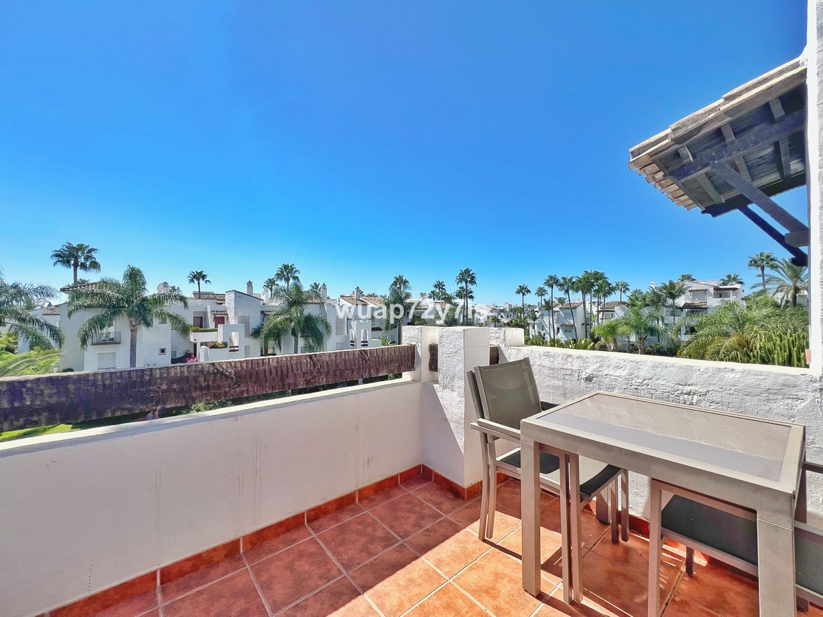 This spacious three-bedroom penthouse is located in Costalita in Estepona East. Upon entering, you are welcomed by a modern kitchen that flows into the dining area and living room, with direct access to the terrace. From the terrace, you can enjoy beautiful views of the swimming pool, which is part of the communal areas of the urbanisation.