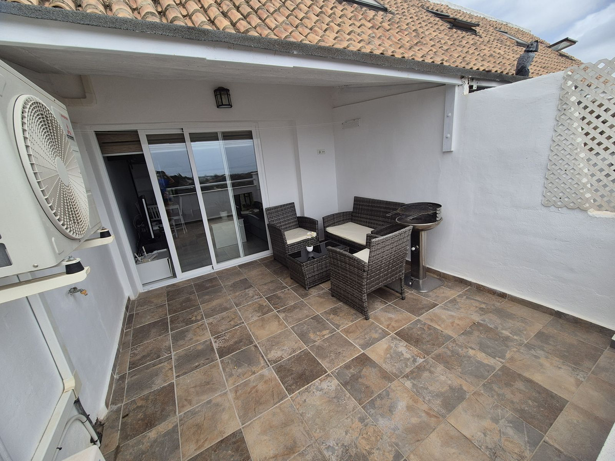 Spectacular panoramic views of the sea, Africa, and mountains are ideal for nature lovers, tranquility, and stargazing from a large private terrace in a top penthouse, offering maximum privacy. The duplex penthouse is perfect for holidays on the Costa del Sol, just 20 minutes by car from Puerto Banús, 10 minutes from Estepona and Benahavis, 5 minutes from the Laguna Village shopping center, Aldi, Buguer King, and a gas station, and 40 minutes from the airport. Excellent for buying your first home, living there for a few years, and then selling to increase its value, due to the area's high growth potential. It's a magnificent investment due to the high demand for small apartment rentals among foreign tourists and local workers without children. Low maintenance costs for community fees and property taxes.