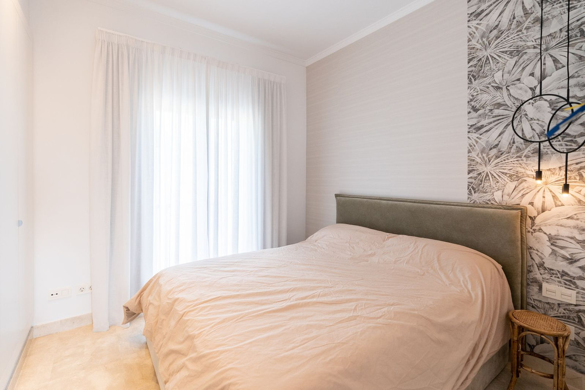 Priced at €690000 : RESALE PROPERTY. The complex where this penthouse is located is strategically positioned, surrounded by the most prestigious golf courses on the Costa del Sol, and offers unparalleled panoramic views of the sea and mountains. It embodies an elegant Andalusian lifestyle, where traditional architecture combines with cutting-edge interior design and high-quality materials. It was recently constructed. All penthouses have terraces and very spacious solariums. The large windows in the terraces allow the homes to be bathed in light and provide spectacular panoramic views of the mountains and the sea. The complex offers a wide range of services within its premises, making it a truly unique urbanization. It features expansive landscaped areas, 5 outdoor swimming pools, a heated indoor pool, a children's play area, a clubhouse with a restaurant/bar, a shop with local products, a gym, a spa with a sauna, a Turkish bath, and a jacuzzi, a CrossFit and yoga area, co-working space as well as 24-hour security and a multipurpose court. Everything is built with the highest quality, both in terms of facilities and finishes. The continuous floors and impressive floor-to-ceiling sliding windows create a seamless transition between the interior and exterior spaces. The open kitchen integrated into the living room is equipped with top-of-the-line Siemens appliances and a home automation system for the facilities, lighting, and blinds. The penthouse has two spacious bedrooms and two bathrooms, one of which is ensuite. In addition, there is a large, bright living-dining room with a fireplace and an open concept kitchen. From the entrance, there is access to the private solarium, a large area with tremendous panoramic views of the sea, golf, and mountains. Designer furniture is included in the price. Close to all services and shops, as well as schools, restaurants, etc., it is very close to the sea and only a 5-minute drive from Puerto Banús and 10 minutes from Marbella. Within the complex there is a company specialized in overseeing short and long-term rentals, offering concierge services.