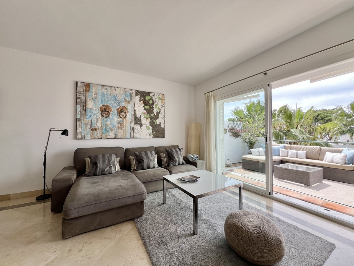 Fantastic top-floor apartment, south-facing, in El Presidente. The beautiful entrance, filled with aromatic plants, welcomes us, and as soon as we enter the hall, we appreciate how the entire apartment is bathed in sunlight. The spacious living and dining room, with large sliding glass doors, opens onto the very sunny terrace. The master bedroom also has direct access to the same terrace and features an en-suite bathroom. The second bedroom overlooks a charming pine forest. The second bathroom also serves as a guest toilet. The kitchen is fully equipped. El Presidente offers a large parking area, five swimming pools, one of them heated all year around, wonderful mature communal gardens with fountains, tennis and paddle courts, and 24-hour security. Amenities, supermarkets, and restaurants are within walking distance, as well as the beach, the new Estepona coastal path, and excellent restaurants such as Salduna, just 250 meters from the development. Do not miss the opportunity to visit this great opportunity!