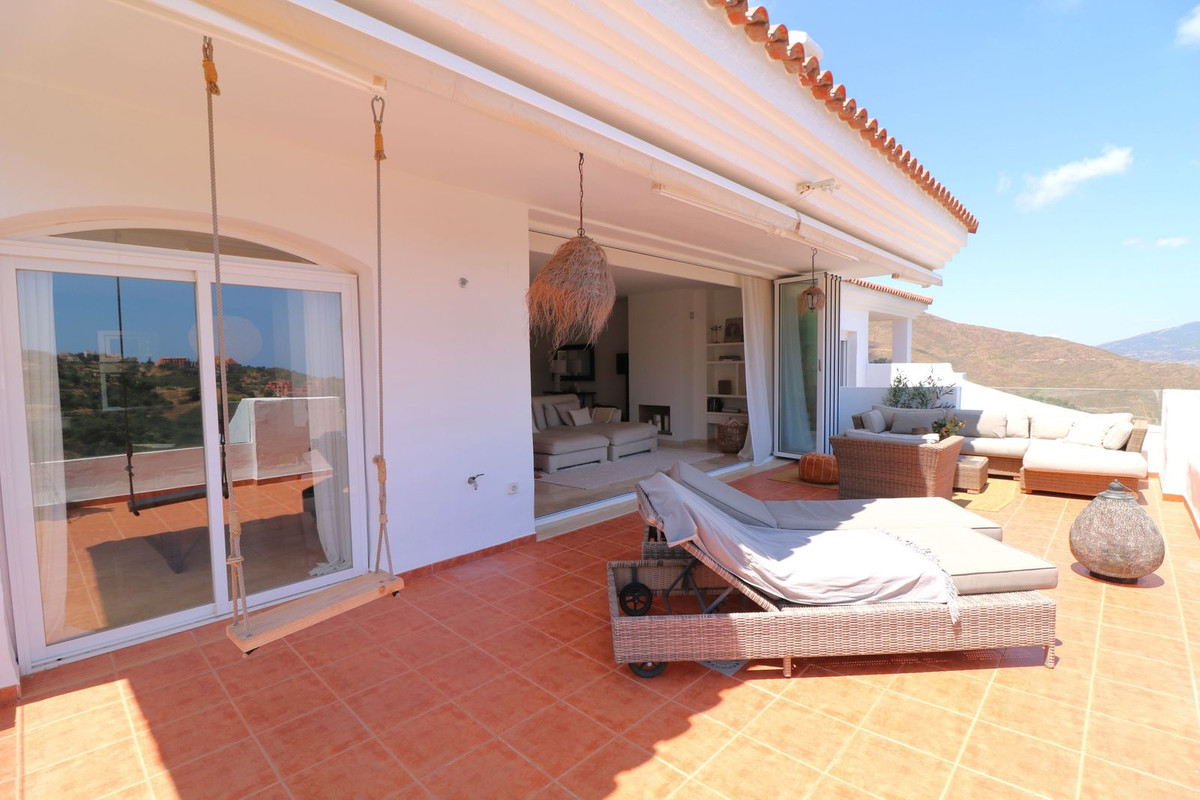 Spectacular 2-bedroom, 2-bathroom penthouse, completely renovated in the exclusive area of La Mairena, Ojén, surrounded by nature and with unparalleled views of the sea, the golf course, and the mountains. The property features a modern open-concept design, with a kitchen integrated into the living-dining room, providing ample space and light throughout. It has two private terraces: one measuring over 15 m² with stunning views of the Mijas Valley, the sea, and the natural surroundings, and another measuring over 6 m² with unobstructed views of the Ojén mountains, ideal for relaxing and enjoying the tranquility of the surroundings. It includes two large parking spaces and a storage room. It is located in a luxury development offering well-kept gardens and a spectacular communal infinity pool with sea and mountain views. This property represents a unique opportunity both for year-round living and for investing in one of the most peaceful and privileged areas of the Costa del Sol. In addition, there is the possibility of purchasing the adjoining penthouse, with the same characteristics but in need of renovation, either to join both properties or as an excellent independent investment. Its price is €455,000.