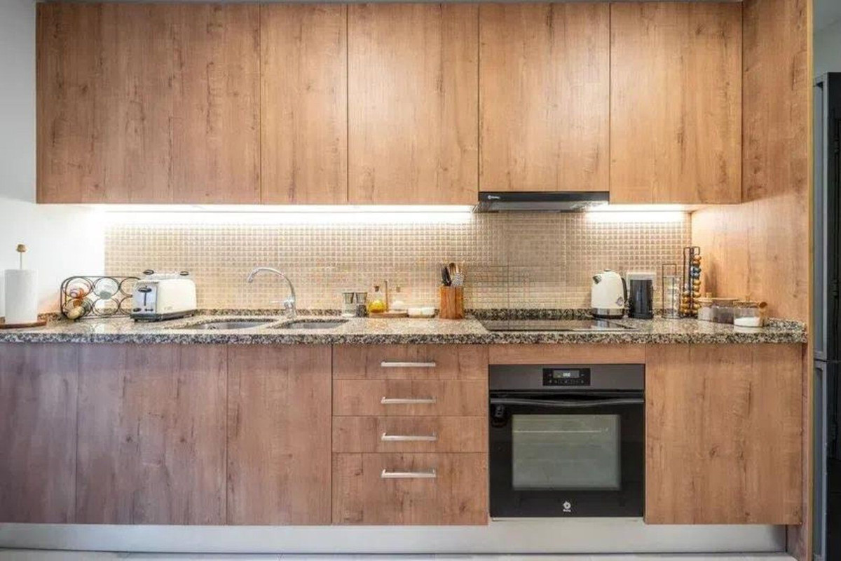 The open-plan living space is flooded with natural light, featuring elegant finishes and direct access to a private terrace with serene garden views – perfect for al fresco dining or relaxing under the Andalusian sun. The fully fitted kitchen combines functionality with sleek design, while the master suite offers privacy and comfort with its en-suite bathroom.