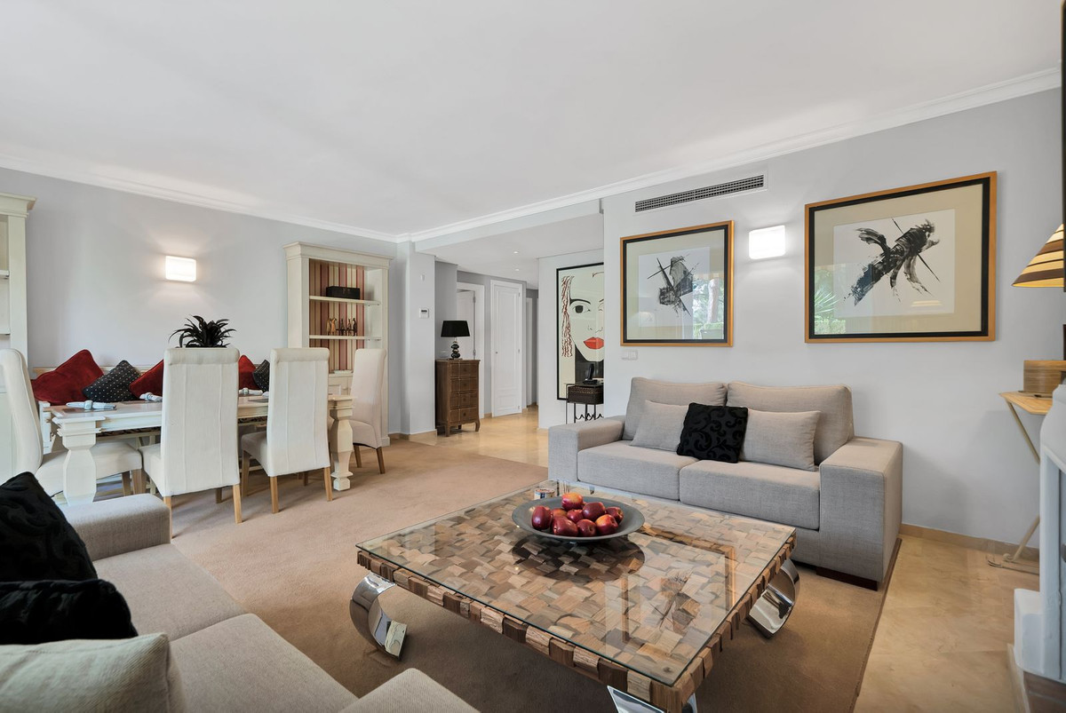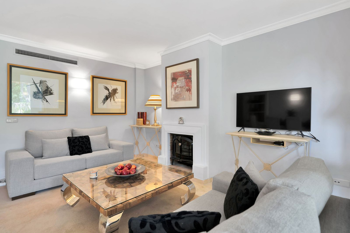 Nice ground floor duplex apartment located in the prestigious El Soto de la Quinta urbanization in Benahavis. With spacious, light-filled rooms and top-quality finishes, it offers comfort and elegance throughout. The living and dining area is a highlight, featuring large glass doors that lead out to a private terrace and garden, boasting spectacular views of the golf course.