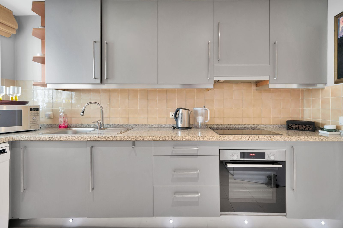 On the ground floor, you'll find the living/dining room, a fully kitchen equipped, the main en-suite bedroom, a storage room, and a guest toilet. The first floor offers two more bedrooms, one with a balcony, and a full bathroom.
