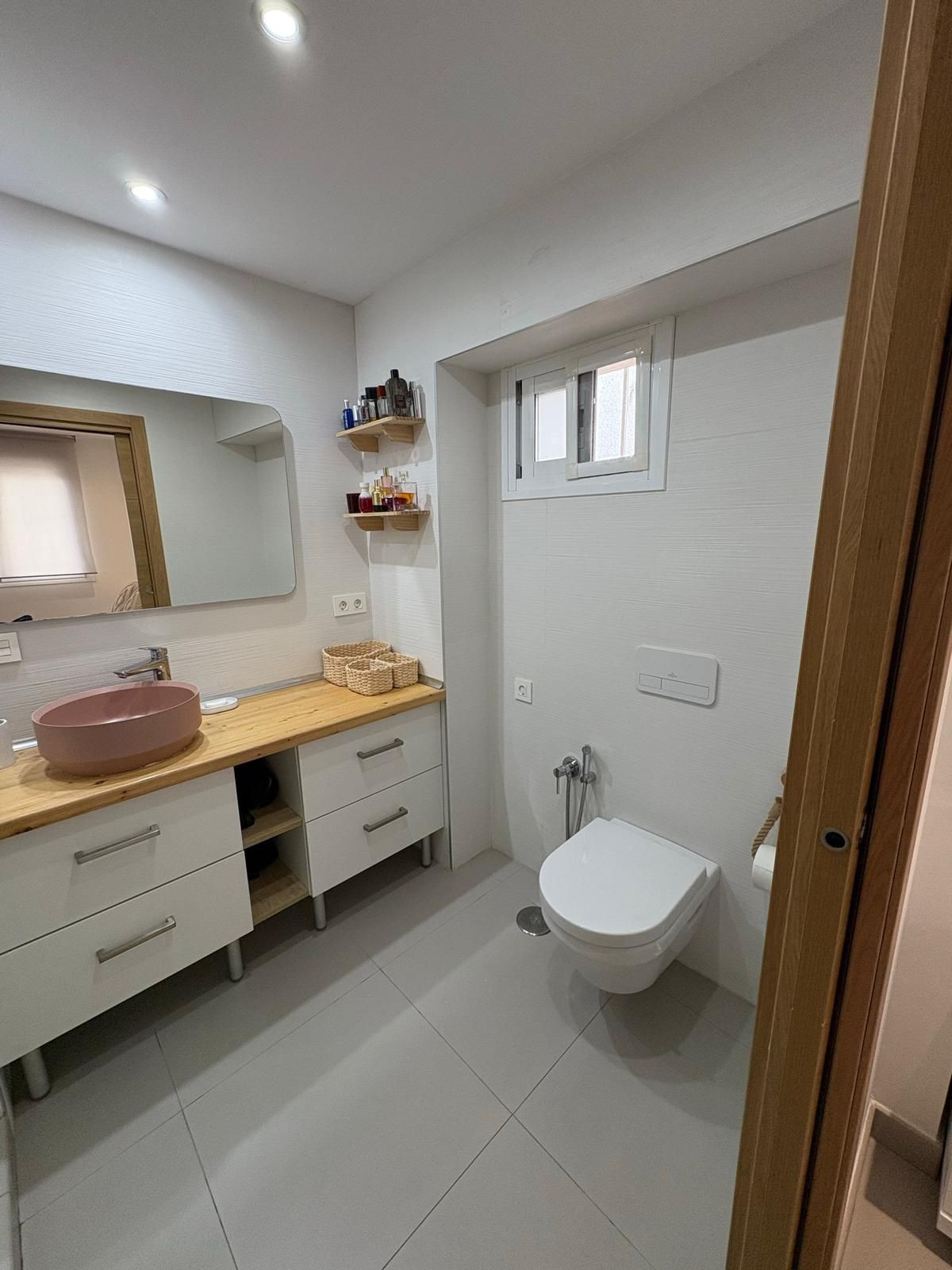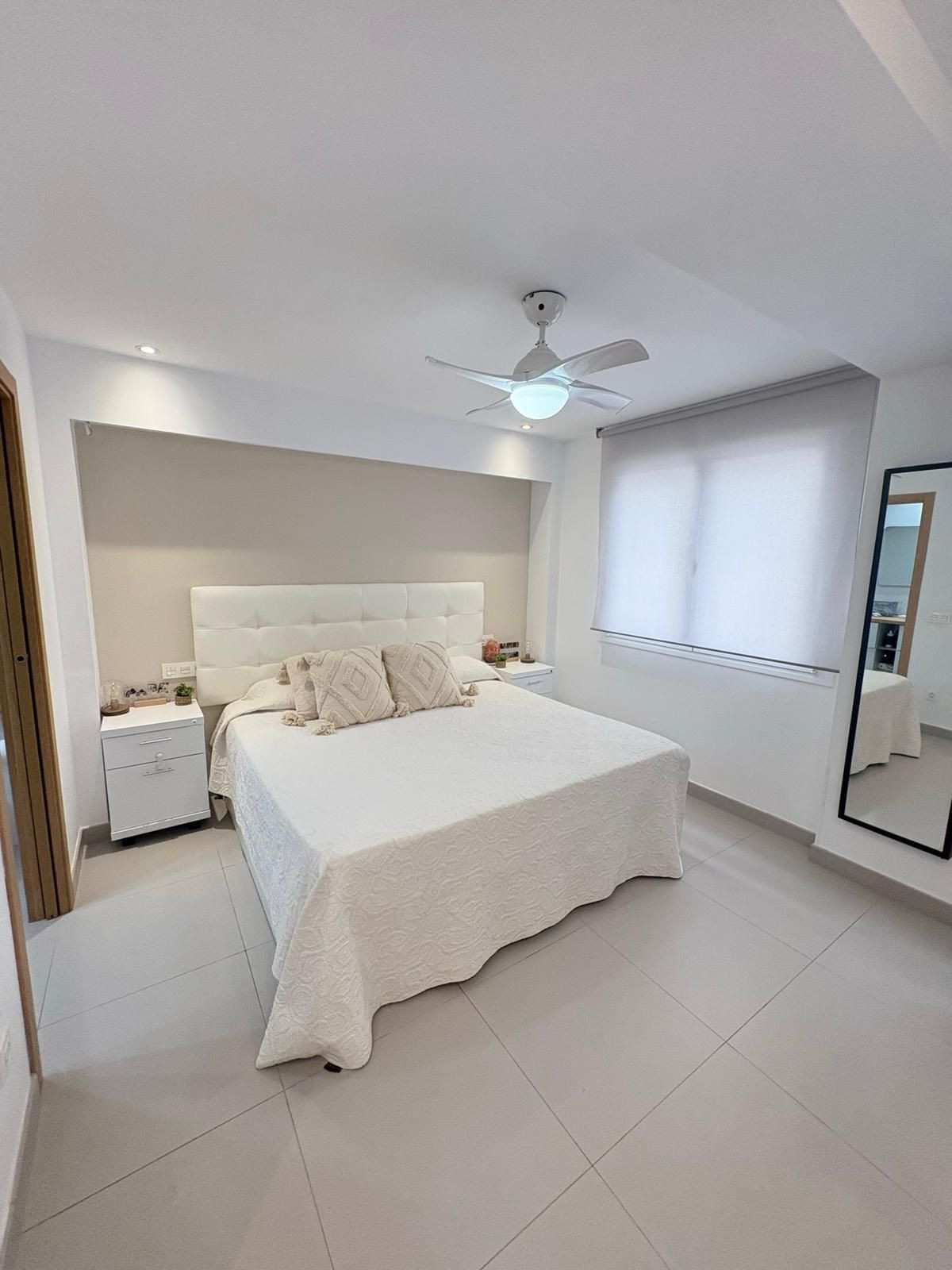We present a welcoming, fully renovated apartment offering two bedrooms with built-in wardrobes and en-suite bathrooms, an open-plan kitchen/living room, and a terrace enclosed with folding security gates. The property is very comfortable, ready to move into, and is being sold partially furnished.