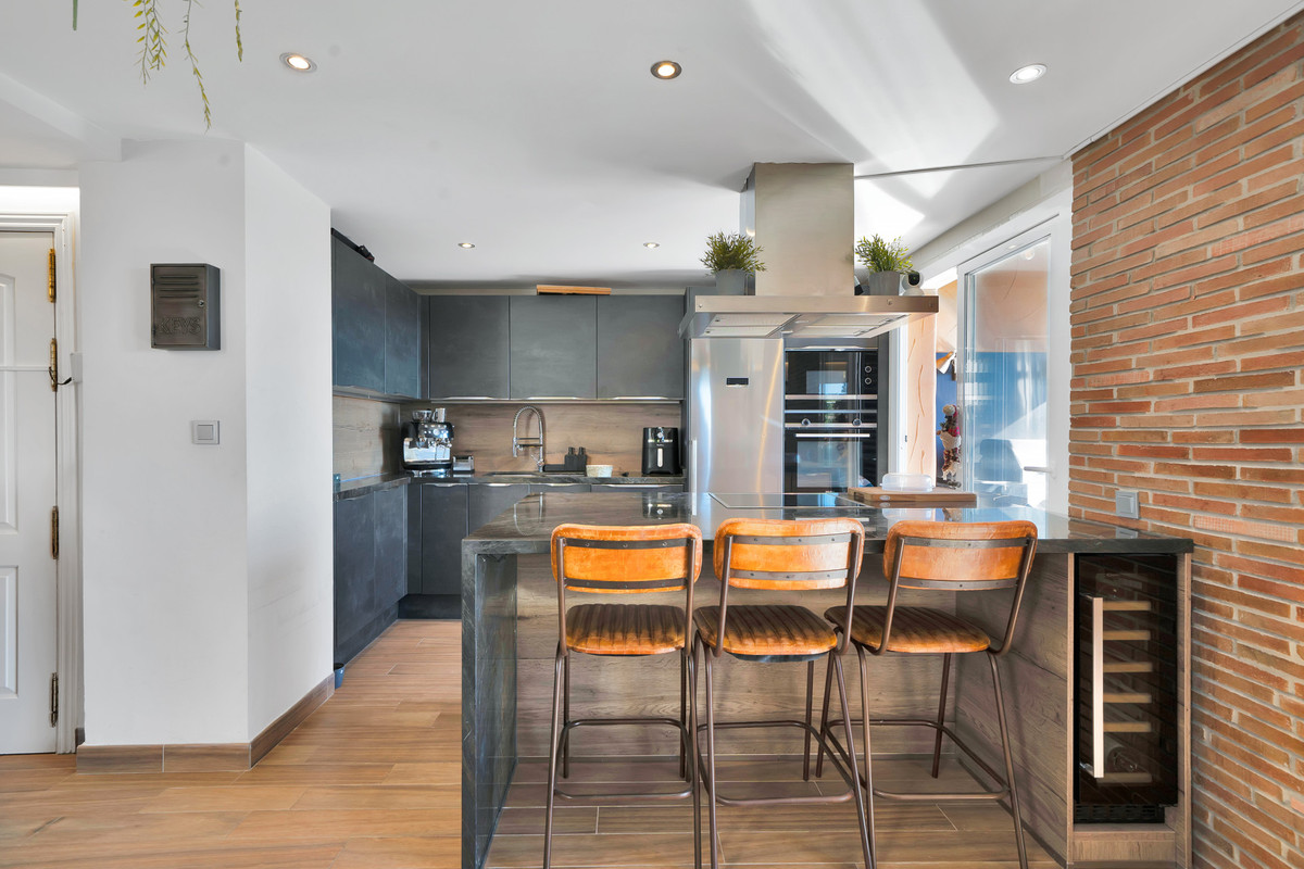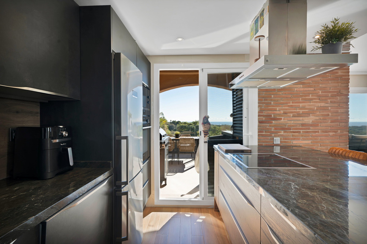 This spectacular duplex penthouse apartment of recent renovation and improvements, located on the second floor in corner, with south west orientation, has stunning panoramic views of the sea, the mountain, Gibraltar, the golf course and the whole environment. In addition, these views can never be blocked, due to their height.