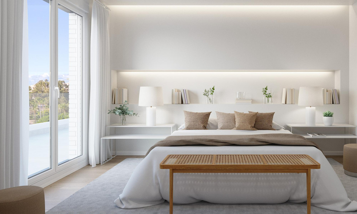 This project seeks to maximize the connection of the buildings with the beauty of the outdoors. For this reason, the team, together with Herrero-Osborne Arquitectos, have designed generous spaces and large windows in the homes, making the most of natural light in all its splendour.