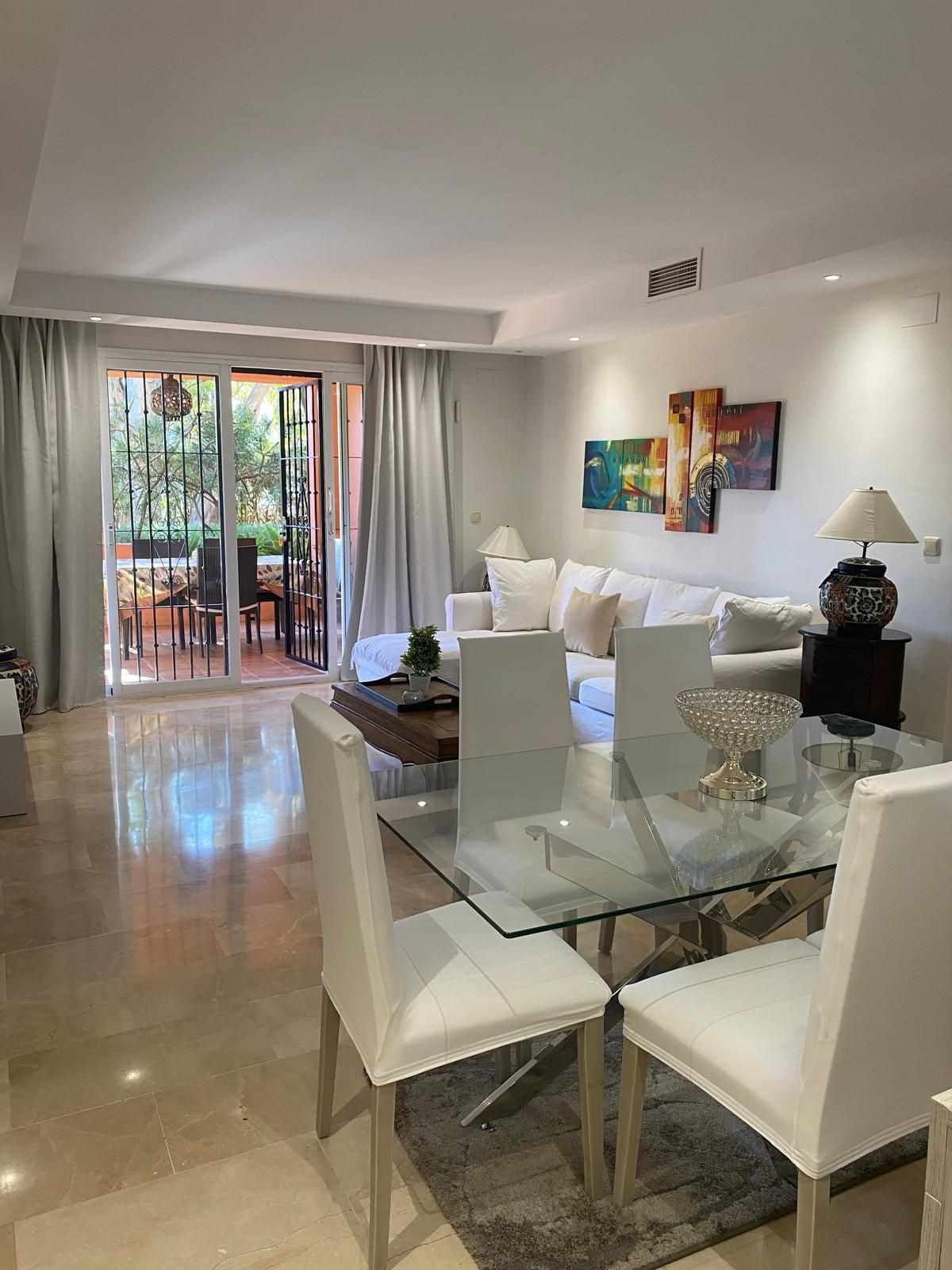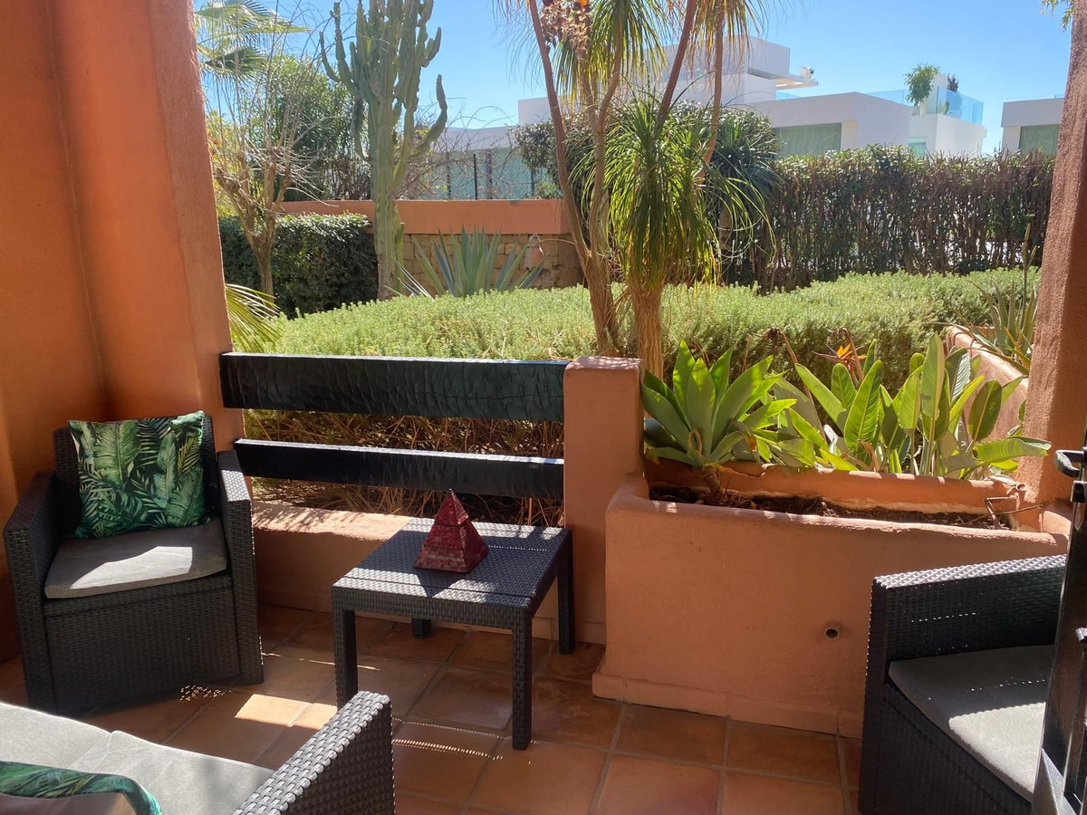 Beautiful south-facing apartment with garden views in a Mediterranean-style complex on the Golden Mile. 8 minutes walk to the beach! This ground-floor property consists of: a bright living-dining room with access to a large terrace; an open-plan kitchen with a separate laundry room; en-suite bedrooms with access to the main terrace; and a guest bedroom with an en-suite bathroom.