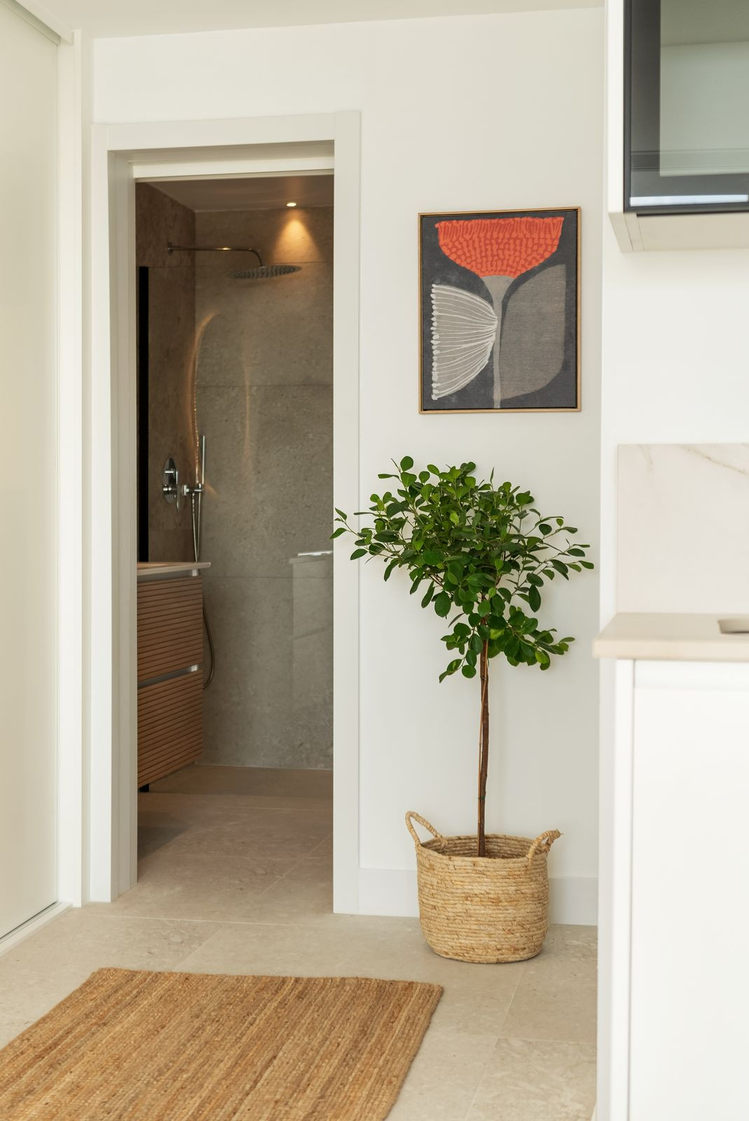 As you step inside, you are greeted by an open, light-filled space where the living room and terrace flow seamlessly together, thanks to bespoke floor-to-ceiling windows from Cortizo. From here, enjoy breathtaking panoramic views of the Mediterranean Sea accompanied by the peaceful sound of birdsong.