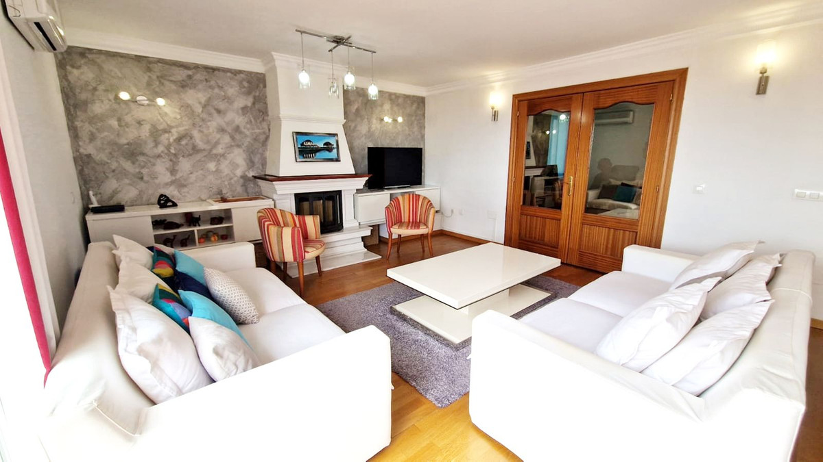 The interior features a modern fully fitted kitchen, a separate dining area, and a spacious lounge with fireplace that opens directly onto the terrace. There are 3 double bedrooms and 2 bathrooms, including a master suite with en-suite bathroom and a private sauna. Designed for comfort and style, the property combines elegant finishes such as marble and wood flooring with all modern conveniences.