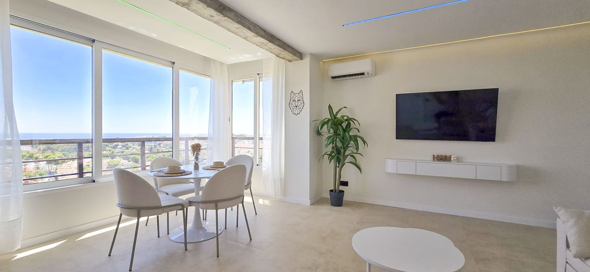 This fully renovated PENTHOUSE 1-bedroom, 1-bathroom apartment offers the perfect blend of modern living and comfort, nestled in the heart of Nueva Andalucía, Aloha. Boasting ,spectacular sea views of both La Concha mountain and Gibraltar, it provides a peaceful yet connected retreat close to all amenities.