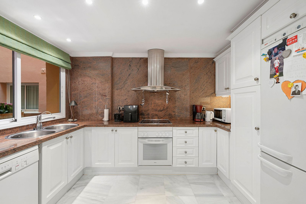 Introducing this spacious two-bedroom corner apartment located in the sought-after development of Magna Marbella in Nueva Andalucia offering stunning panoramic sea, mountain & golf views from it´s west facing terrace. The accomodation comprises an entrance hall, fully equipped kitchen, spacious lounge & dining area leading directly out onto the covered/uncovered terrace, master bedroom suite with direct access to the terrace and a good-sized guest bedroom & family bathroom. This unit has the possibilty to be converted into a three-bedroom and an extra special feature is the large double terrace. The development itself is gated with 24-hour security, two communal pools and 1 underground parking space and storage room included in the price.