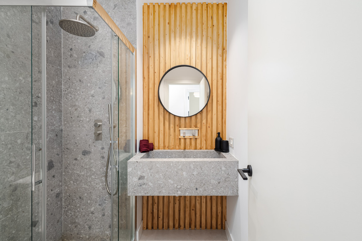 The open plan living area creates a light and airy atmosphere, perfect for both relaxing and socializing. Here you'll find an impressive kitchen island, which is ideal for socializing and cooking. The terrace is a real highlight, equipped with a built-in barbecue and an outdoor kitchen – perfect for enjoying delicious meals outdoors.