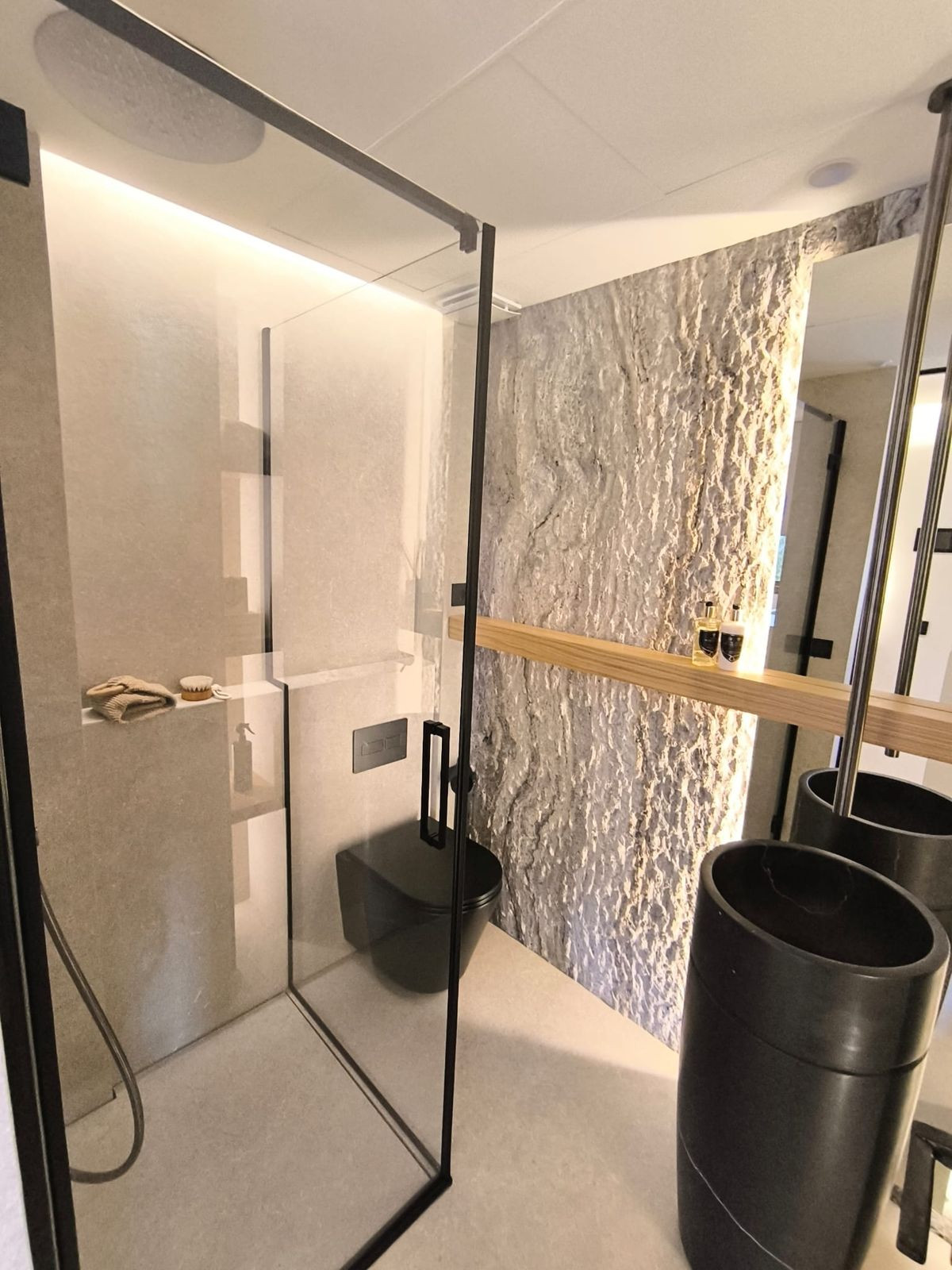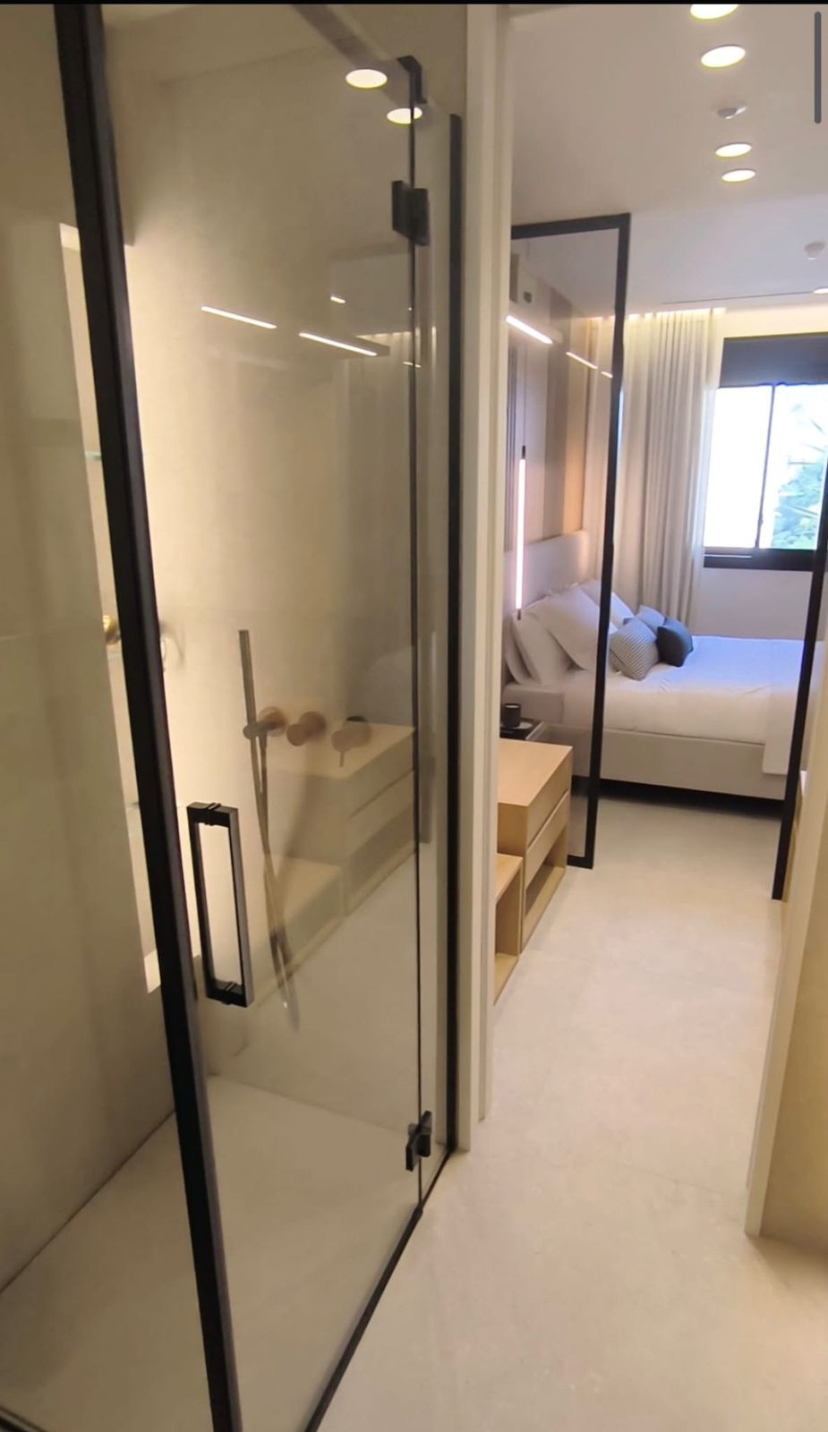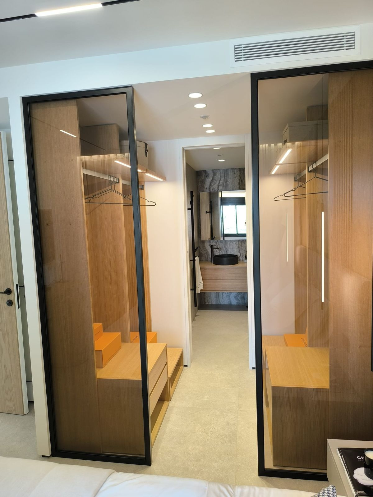 Master bedroom suite with dressing room and private bathroom. Both bedrooms have LG televisions. Comprehensive home automation control from the Zennio brand.