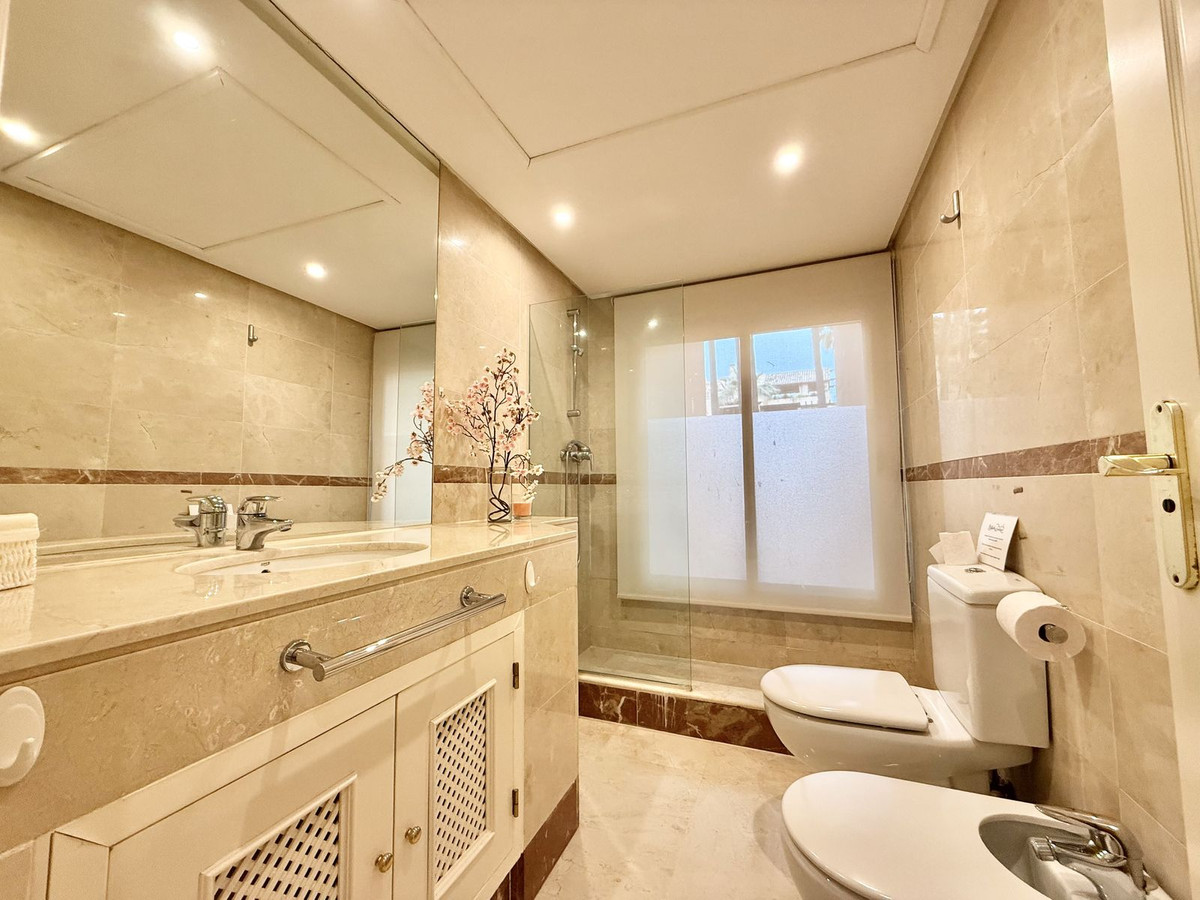 The centre of San Pedro is just a 5-10 minute walk away, offering a variety of services and shops. In addition, the area boasts a number of outstanding facilities such as the Nueva Alcántara Club, which has paddle tennis courts, dining room and gymnasium, as well as the international bilingual Laude International School, renowned for its education from kindergarten to A Levels. Puerto Banús is just a 5 minute drive or a short walk along the beach.