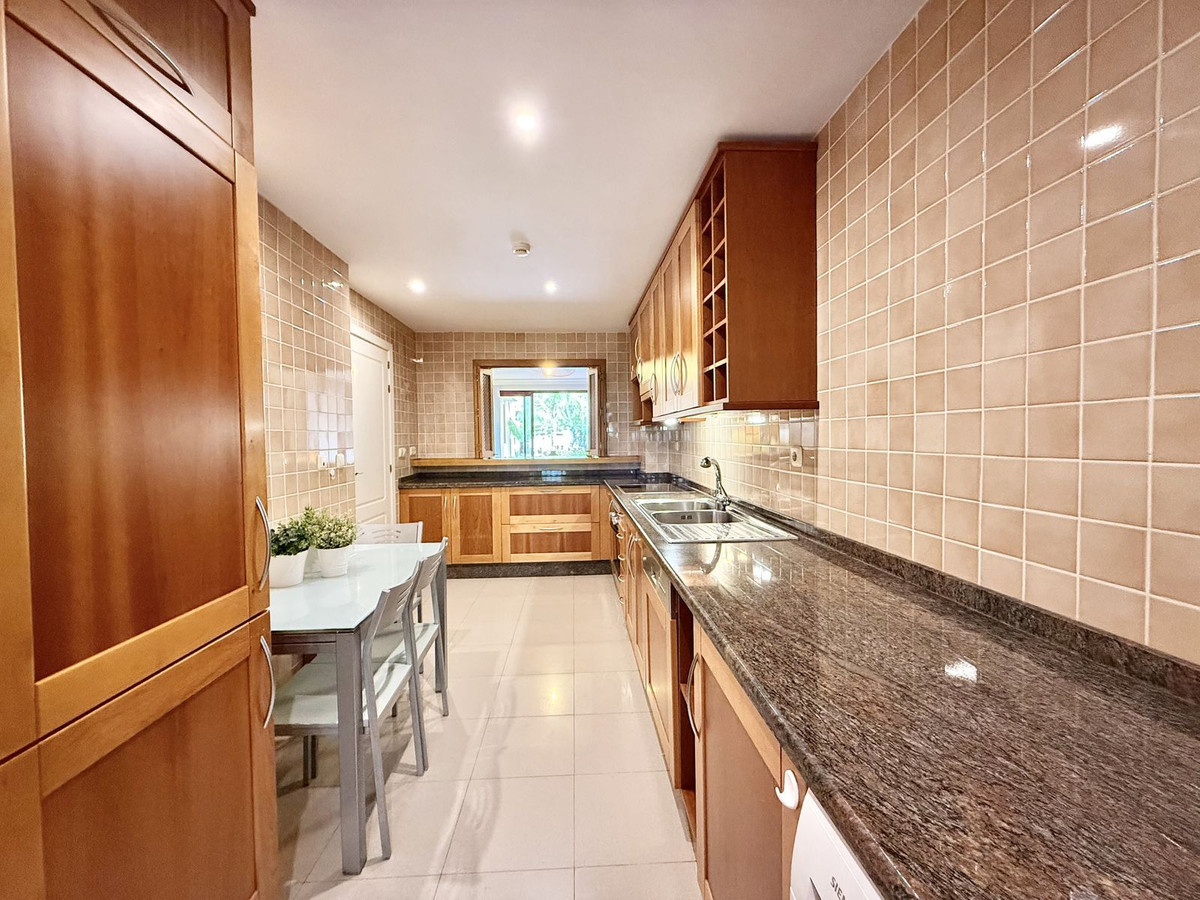 With 3 bedrooms and 2 bathrooms, the flat stands out for its impeccable design and brightness. Its spacious private terrace is perfect for al fresco dining all year round, as well as providing direct access to the swimming pool from the comfort of your home. The kitchen is fully equipped with modern appliances, while the bathrooms have the added convenience of underfloor heating.