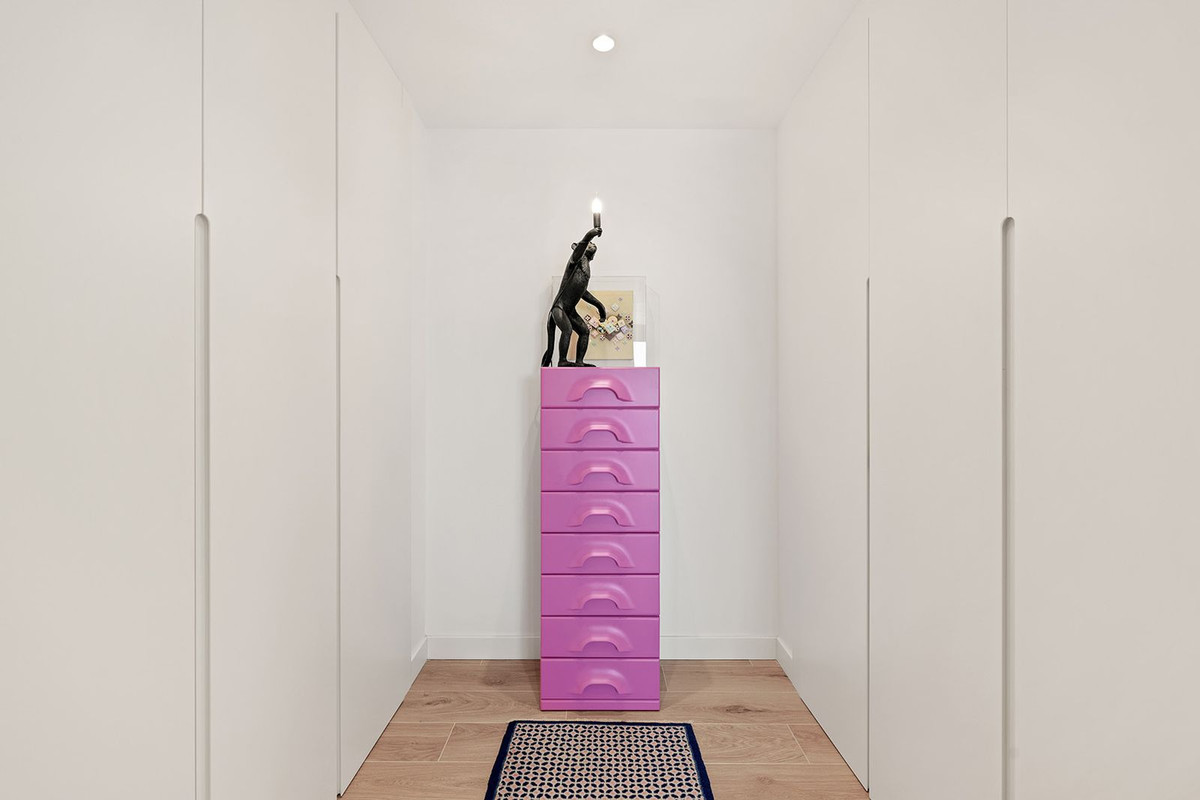 Upstairs the solarium is fully equipped with a private plunge pool, shower and outdoor kitchen/bar area. There is plenty of space for sunbathing, lounging around the fireplace and dining al fresco, especially with the motorised pergola enabling a quick switch between sun or shade.