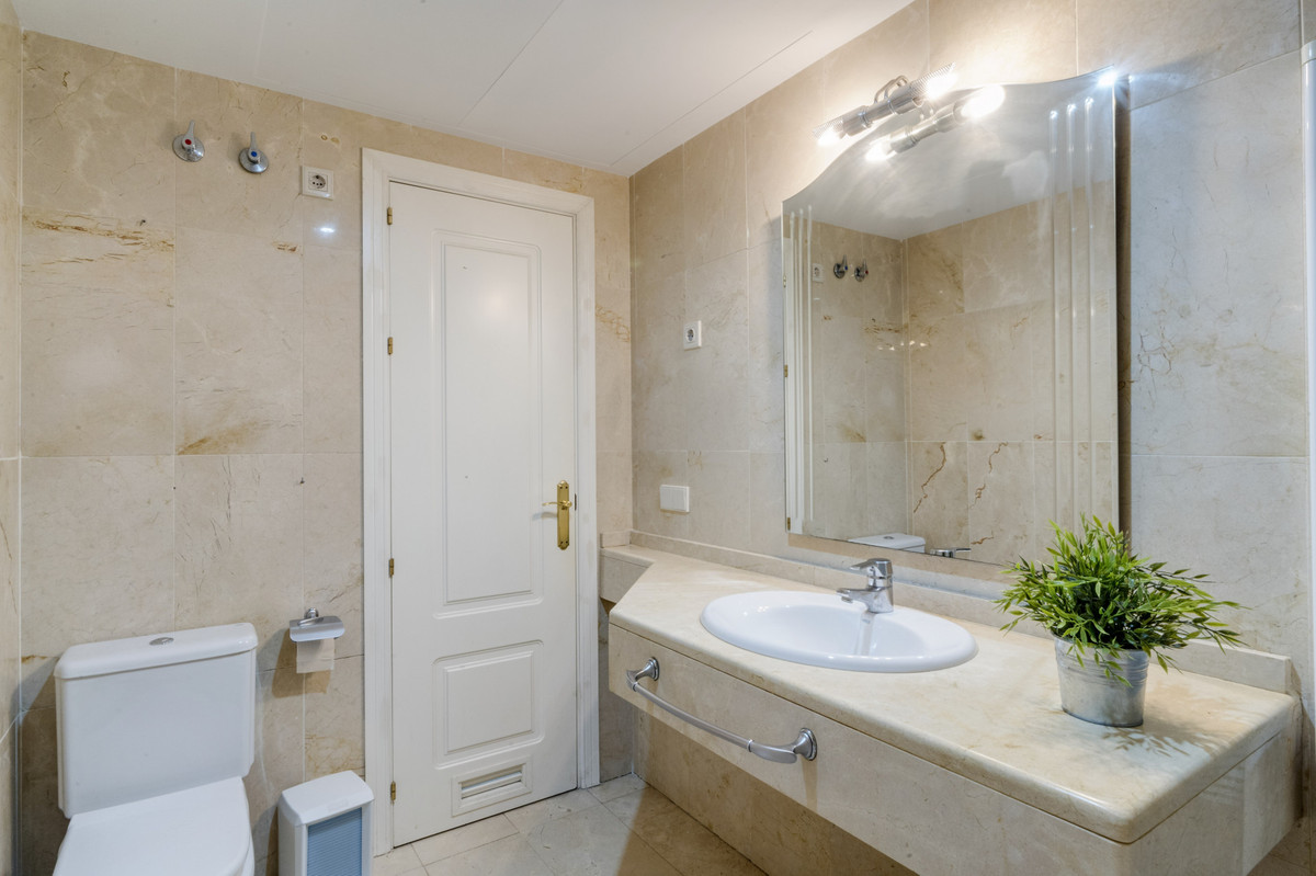 Residents benefit from the community's exceptional amenities, including a beautiful communal pool set within lush gardens, 24-hour security service, a secure entrance, surveillance cameras, and a gated setting to ensure peace of mind. The complex is family-friendly, providing a children's playground nearby, and is ideally located just 300 metres from the beach and a short walk from Guadalpin Suites and Marbella Club Hotel, supermarkets, restaurants, and the bus stop in front of the urbanisation.