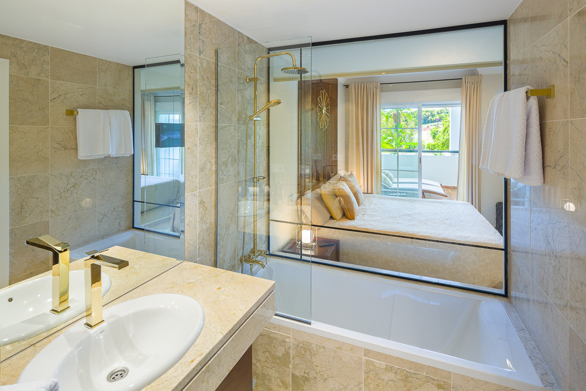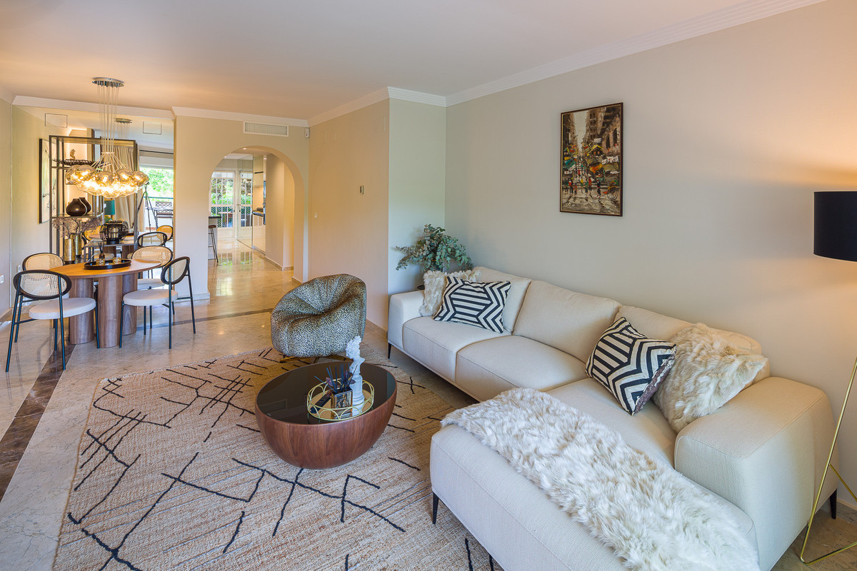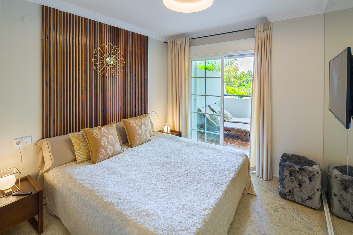 Newly renovated Luxury design, cozy apartment in prestigious Marbella Golden Mile urbanization "Balcon de Puente Romano", next to "Puente Romano Nobu", "Marbella Club", the beach and sea – 3-5 min walking distance. Bright and spacious apartment with a brand-new furniture and top-quality equipment, 2 modern bedrooms, 2 bathrooms, 2 big terraces, HD TV in each room, air conditioner with 3 different climate zones, 24 h access to newly renovated swimming pool. For your comfort and luxury living in tropic garden surround. Private underground parking is included.