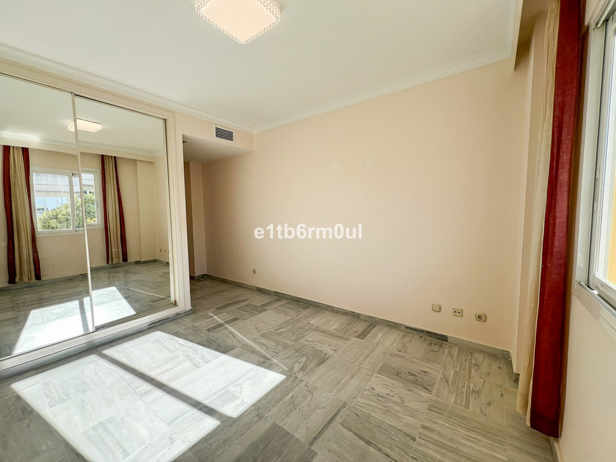 MARBELLA GOLDEN MILE • WEST FACING • WITHIN WALKING DISTANCE TO THE BEACH AND ALL AMENITIES • Superb well-situated West-facing two bedroom apartment on the desirable Marbella's Golden Mile, within walking distance to the beach and an array of amenities such as supermarkets, restaurants, shops and transports facilities. The fully gated complex offers well-maintained tropical gardens, large swimming pool, paddle court and lifeguard during the summertime. The bright apartment comprises: entrance hall with cloak room, living/dining room with access to the afternoon sun terrace, master bedroom en suite, guest bedroom, separate bathroom and a fully fitted kitchen with adjoined utility room. Features include: an underground car parking space, A/C H+C, marble floors throughout. Perfect as a holiday home, permanent residence or investment, in a quiet complex without road noise and yet, close to the buzz of Marbella's beaches along the Golden Mile. Sold fully furnished.