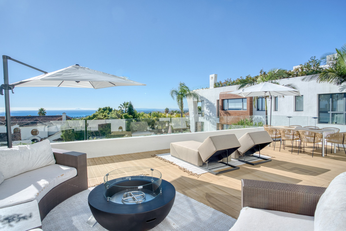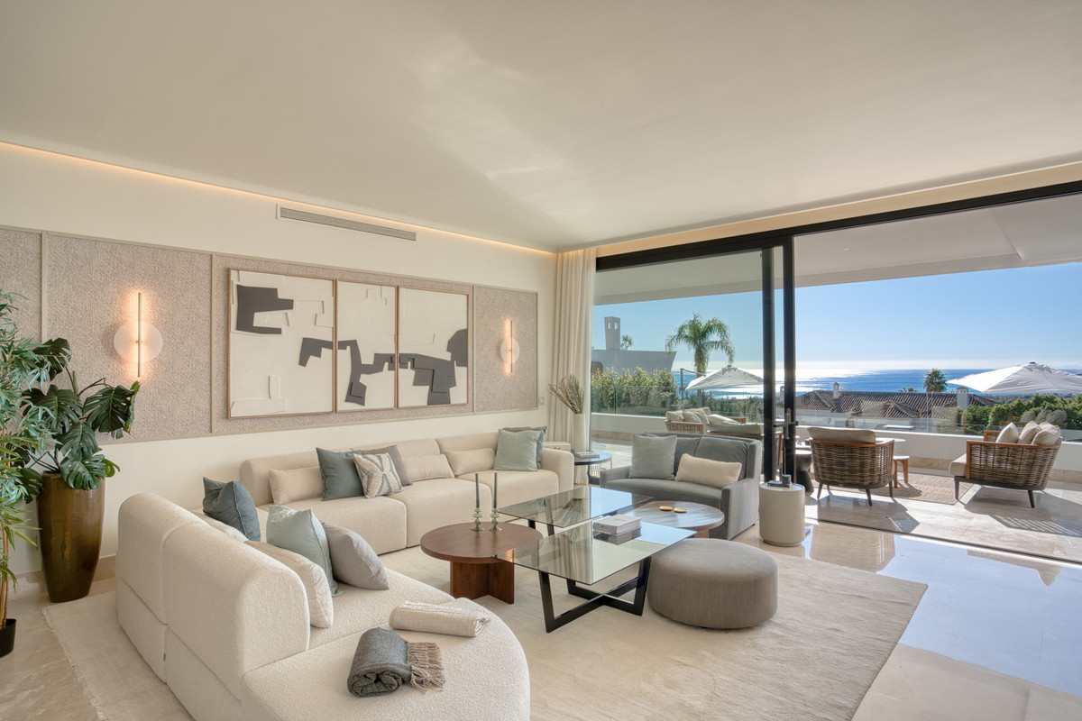 Exceptional four bedroom, south facing luxurious property in the prestigious La Reserva De Sierra Blanca, Marbella. This beautiful ground floor duplex apartment has been designed and finished to the highest standard to provide elegant living in a prime location. The property consists on the entrance level of an open plan living and dining area with patio doors leading to the private terraces that boast stunning sea views; fully fitted open plan kitchen with high end appliances; the master suite with access to the terrace; two guest suites; and a guest toilet. The lower-level leads to an additional bedroom, bathroom, laundry area and a unique cinema area with bar; a relaxing area for entertaining. Other features include three private parking spaces, storeroom, hot and cold air conditioning and underfloor heating throughout. La Reserva De Sierra Blanca offers residents beautifully kept gardens, swimming pool, gym, sauna and secure gated complex with 24hr security.