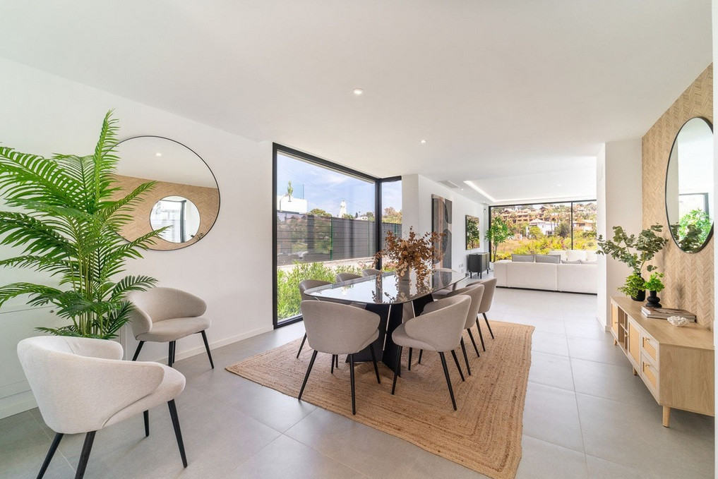 Priced at €1795000 : Set directly on the fairways of El Campanario Golf, this newly built villa delivers a refined residential experience just minutes from Puerto Banús, golden beaches, and some of the Costa del Sol's most prestigious golf courses. Positioned within a highly sought-after residential enclave, the property offers privacy, architectural clarity, and seamless indoor–outdoor living. Built across 358 sqm on a 518 sqm plot, the villa has been thoughtfully designed to maximize natural light, spatial flow, and contemporary comfort. The home features five generous bedrooms, four with en-suite bathrooms, plus a guest toilet. Two exceptional primary suites include private rooftop terraces and walk-in wardrobes, creating elevated spaces that feel both intimate and luxurious. At the center of the home, a sophisticated open-plan living area connects effortlessly to the landscaped garden through expansive glass doors. Outside, a heated infinity-edge pool, alfresco dining area, and state-of-the-art BBQ set the stage for relaxed Mediterranean living and stylish entertaining. The lower level transforms the property into a private leisure retreat, complete with a cinema room, games area, gym, and additional bedrooms — ideal for hosting guests while maintaining complete comfort and independence. Overlooking tranquil golf scenery, the outdoor spaces invite year-round enjoyment — from sun-soaked afternoons to elegant evenings under the stars. A private garage and extensive parking further enhance everyday convenience. This is more than a home — it is a carefully curated lifestyle property designed for buyers who prioritize location, design, and long-term value on the Costa del Sol.