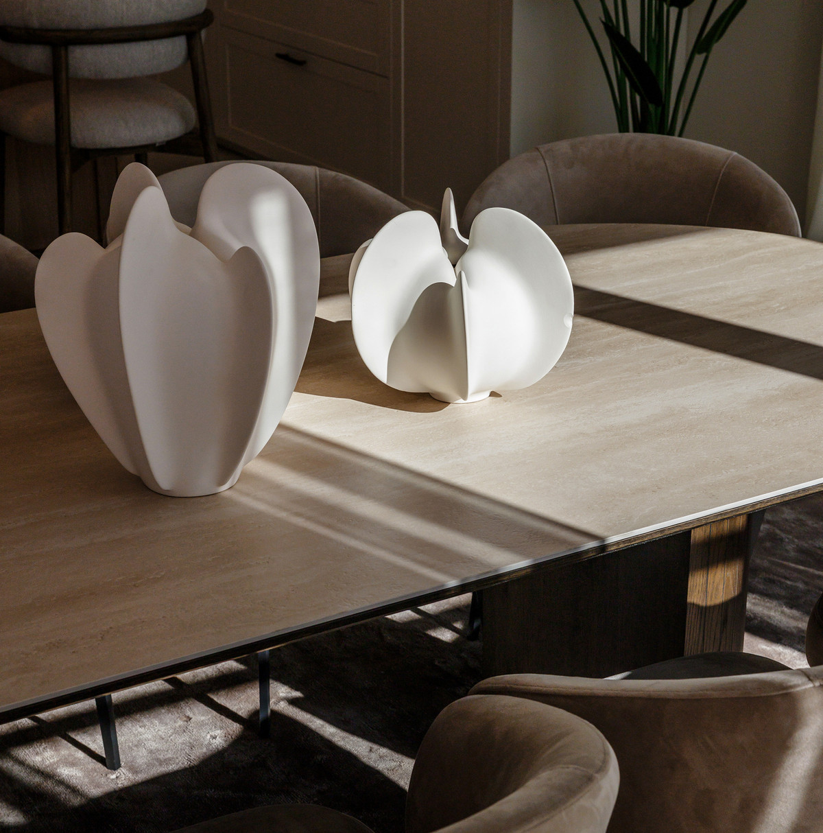 The property offers five well-appointed bedrooms, including a private primary suite on the upper floor with direct terrace access. Each room follows the same design standard—neutral tones, bespoke carpentry, and thoughtful lighting. The upper level also opens to extensive outdoor areas that capture views across the coastline.