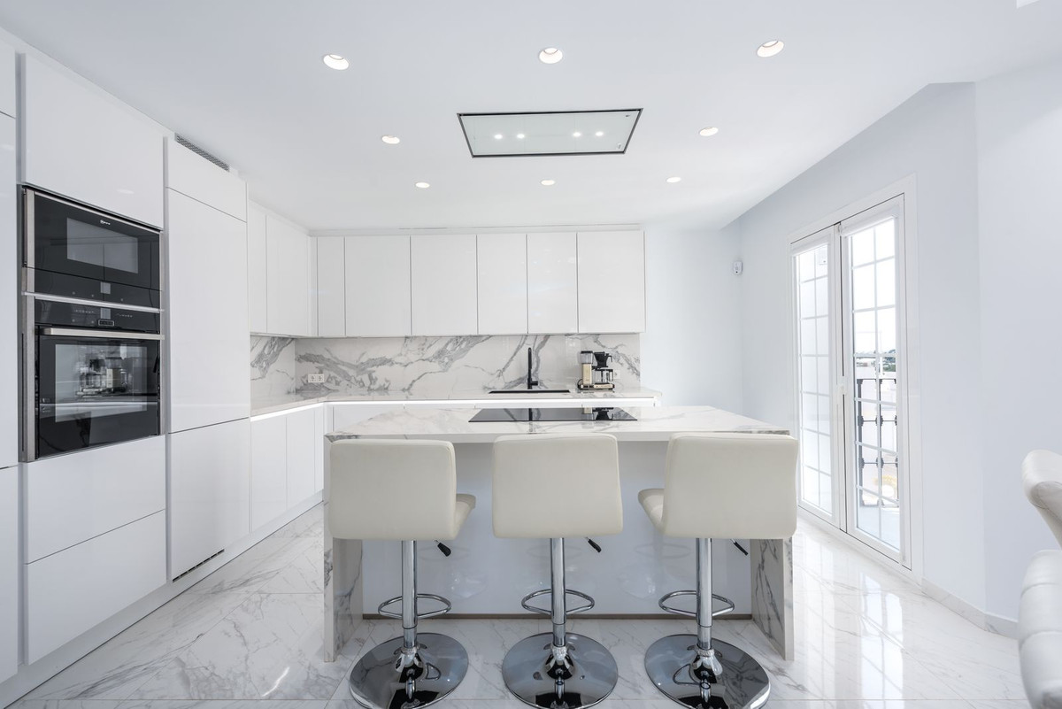 Completely renovated 3-bedroom townhouse situated in a prestigious urbanization in the heart of Nueva Andalucia´s golf valley. Built with the highest quality materials and extra features such as electric underfloor heating with separate control zones, Led spotlights and led strips with dimmers in all ceilings.