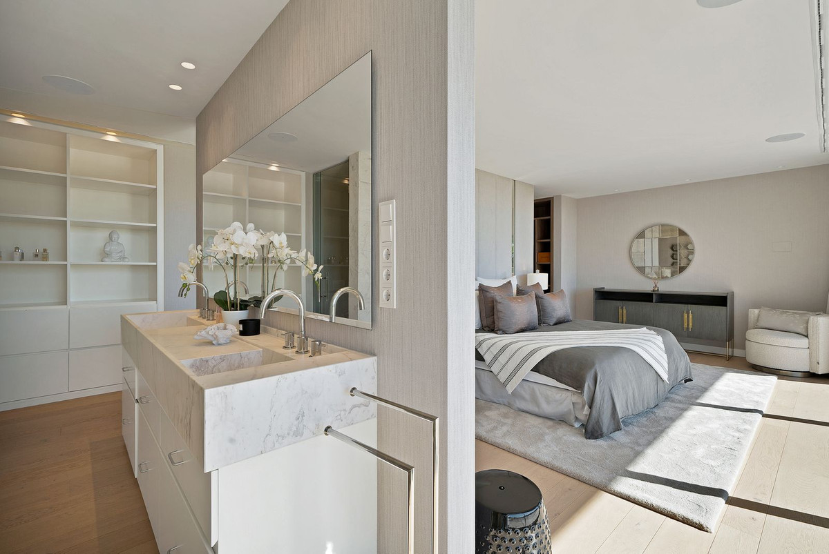 The first floor hosts three generously sized en-suite bedrooms, including a sumptuous master suite that boasts a walk-in dressing room, a spa-like bathroom, and access to a private 30m² terrace with mesmerizing views.