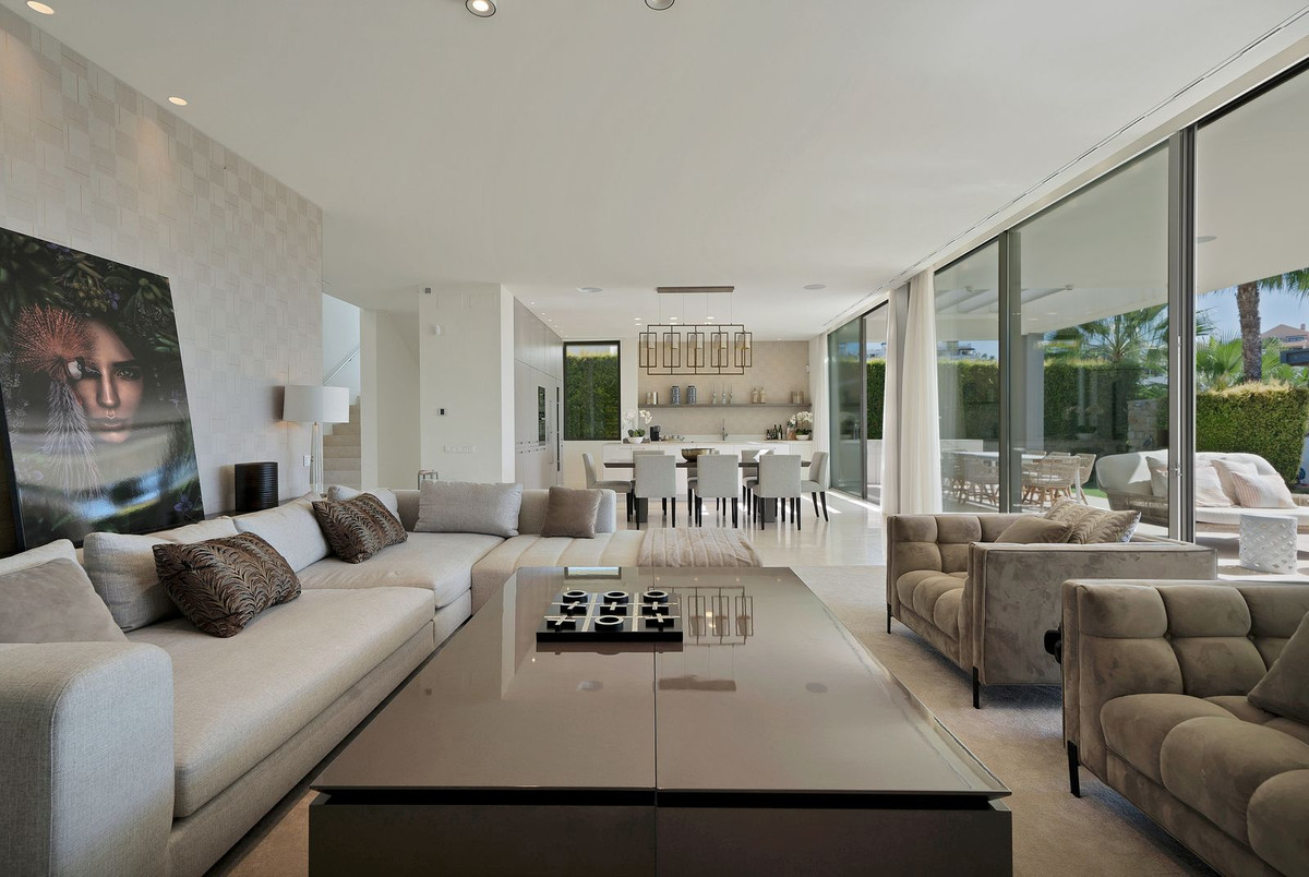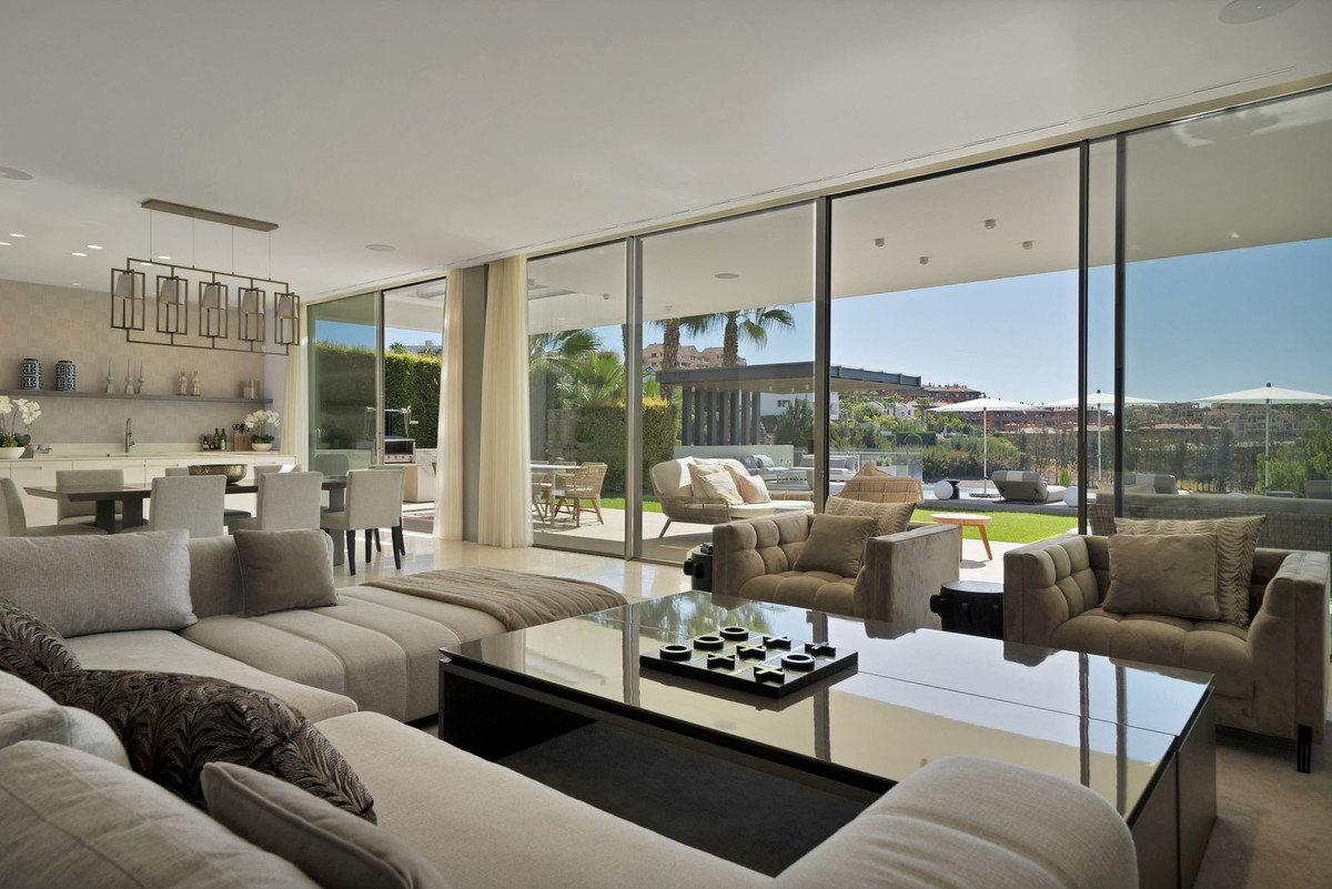 This exquisite contemporary villa is nestled within a prestigious gated community in Atalaya, offering breathtaking panoramic views of the golf course. Designed across three levels, this residence seamlessly blends modern elegance with functional luxury.