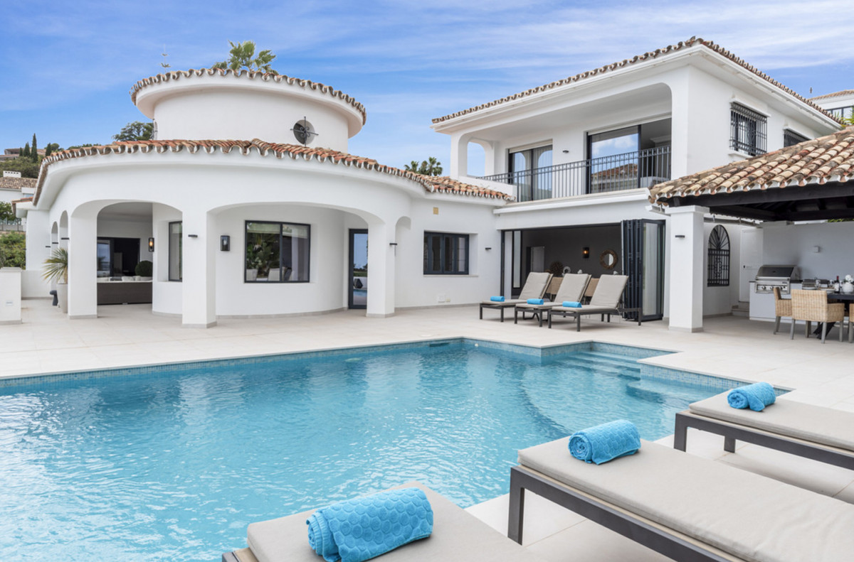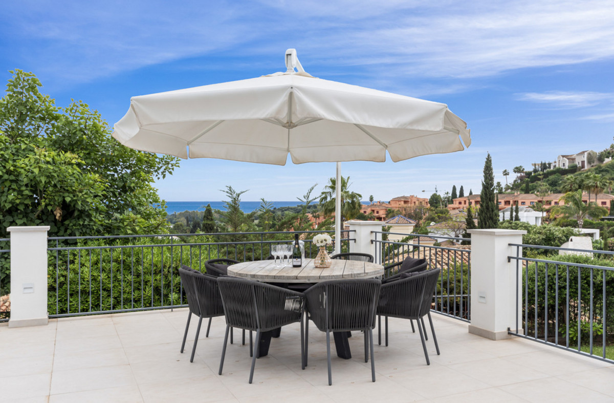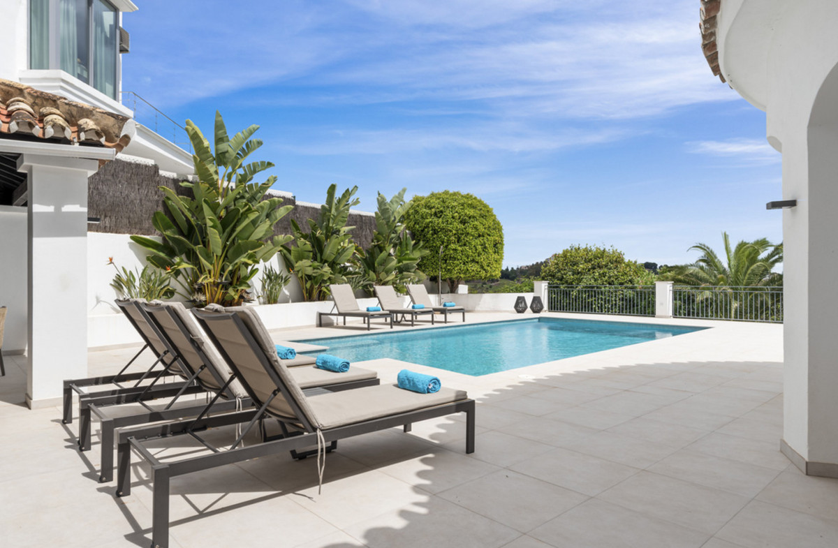 This Andalusian-style villa, fully renovated to the highest standards, combines authenticity with modern elegance. Ideally located in the enclave of El Paraíso Alto, Benahavís, the home offers breathtaking panoramic sea and golf views, while being just minutes from Marbella, Puerto Banús, and Estepona.
