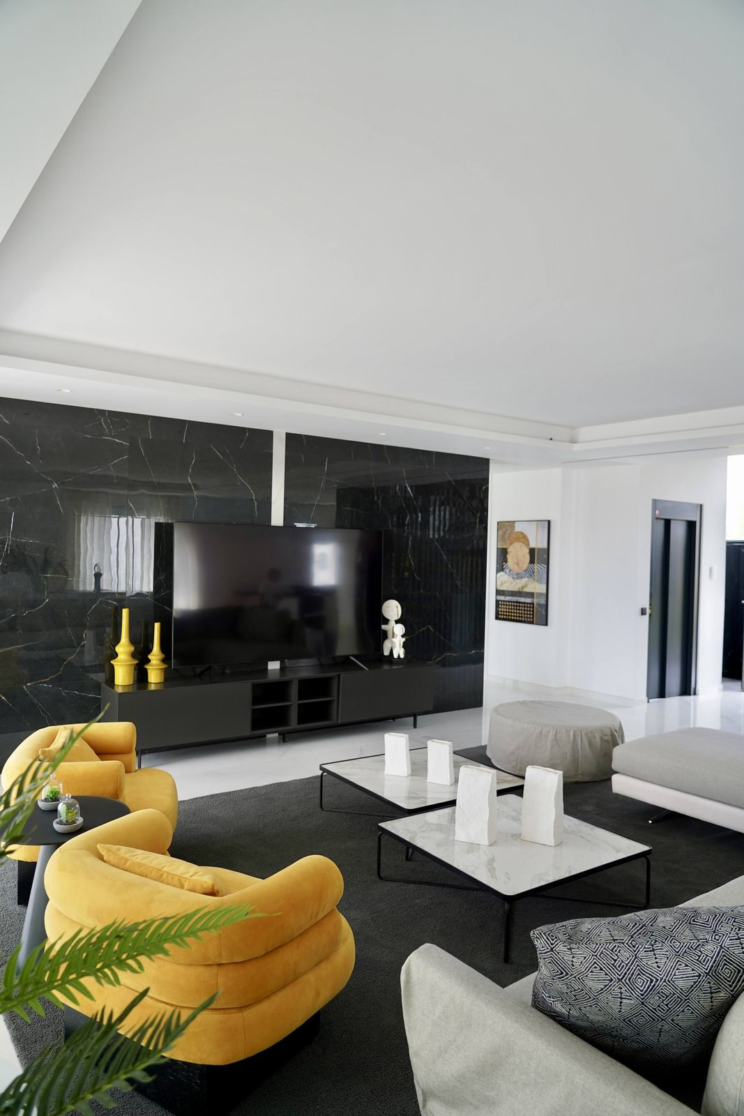 Indoors, the villa features bright, open spaces equipped with home automation, air conditioning, marble floors, jacuzzi, gym, games room, wine cellar, staff accommodation, and a fully fitted kitchen. The property is sold fully furnished with carefully selected high-end pieces.