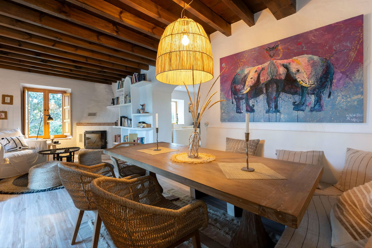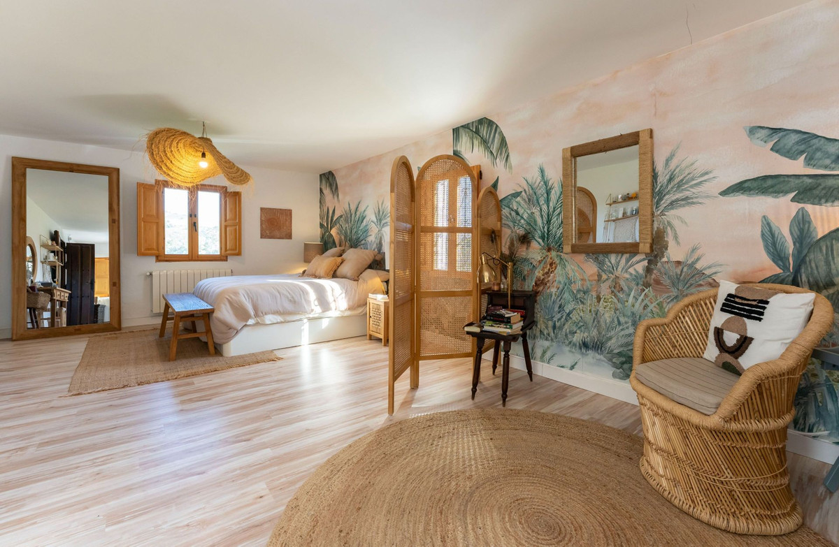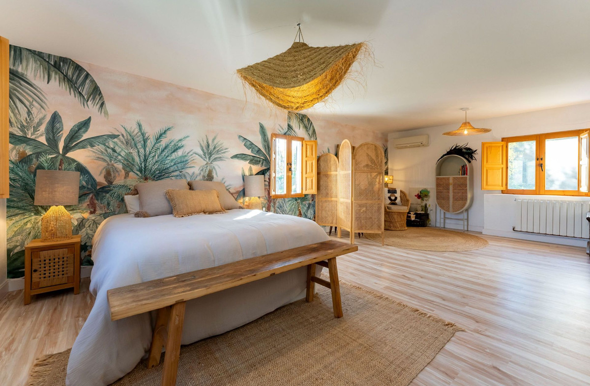 Nestled in a picturesque countryside setting, just 7 kilometres (a 15-minute car drive) northwest of the charming village of Coín, this exquisite country estate offers a unique blend of rustic charm and modern amenities. Accessible via good roads, the last 2 kilometres transition into a quaint country lane (with some potholes), providing a true escape into nature. Set on a sprawling 11,000m2 fully fenced plot, the estate boasts: