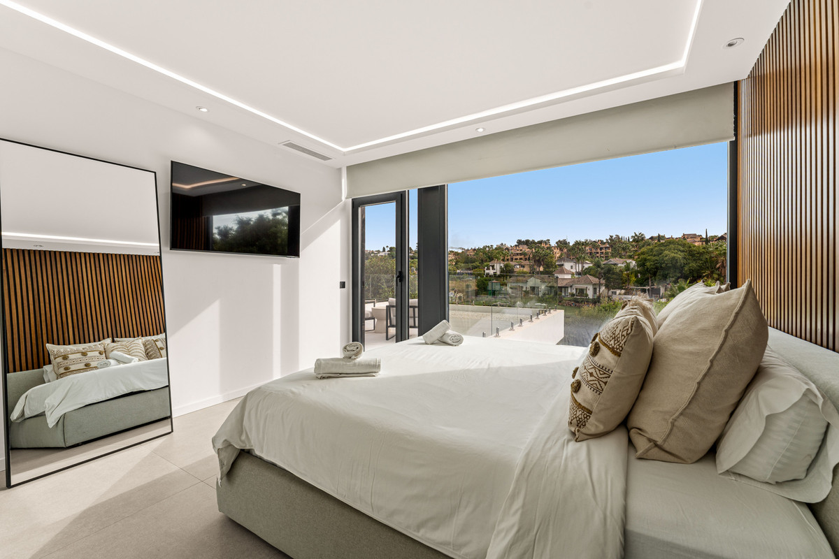 Priced at €1790000 : Contemporary masterpiece that perfectly balances architectural sophistication with practical design, located in El Paraiso. Completed in 2023, this modern villa showcases the vision of a renowned architect who excels in blending elegance with functionality. Surrounded by the tranquility of a golf course backdrop, the property offers a lifestyle that combines comfort, privacy, and refined Mediterranean living. The home features five spacious bedrooms, four of them en suite, along with three additional bathrooms and a guest toilet. Interiors highlight a minimalist yet warm aesthetic, enhanced by high-quality finishes and carefully selected furnishings. At the heart of the villa is an open-plan kitchen and living area. The kitchen, equipped with premium Miele appliances, reflects innovation and quality, while the living space extends seamlessly to a terrace with views of the lush fairways. This integration of indoor and outdoor spaces makes the villa ideal for relaxed family living as well as larger gatherings. On the first floor, the master bedroom offers a private retreat with an en suite bathroom and access to a terrace overlooking the golf course, creating a perfect spot for morning coffee or evening relaxation. Another en suite bedroom is also located on this level, with direct access to the terrace and its serene views. The basement expands the lifestyle offering of the property with a dedicated cinema room, a guest suite, and two additional bedrooms sharing a bathroom, ensuring plenty of space for family and visitors alike. Outdoor living is equally impressive. A saltwater swimming pool, pre-installed for heating, merges visually with the golf course, creating a seamless horizon of green and blue. A fully fitted outdoor kitchen and BBQ area make entertaining effortless, while the expansive terrace provides the perfect stage for al fresco dining. The villa's south-facing orientation ensures light-filled interiors and sunny terraces throughout the year. Modern technology enhances the practicality of the home. Electric blinds, double-glazed windows, an advanced alarm system, and a smart home setup provide both comfort and security. An automatic irrigation system maintains the landscaped gardens, allowing residents to focus on enjoying their surroundings. The Villa's location is as appealing as its design. Within five minutes' drive are local shops, and in just 10 minutes residents can reach excellent international schools and some of Estepona's finest beaches. The nearby neighborhood of El Ingenio adds further charm, with a mix of Andalusian-style villas and modern apartments surrounded by greenery. The area offers a peaceful atmosphere yet remains close to the vibrant amenities of Marbella and Puerto Banús. Lifestyle opportunities abound. Golfers will appreciate the proximity to prestigious courses such as Aloha Golf Club and Las Brisas in Nueva Andalucía's famed Golf Valley. Fitness enthusiasts can enjoy nearby wellness facilities, including Real Club Pádel Marbella. Dining options are plentiful, ranging from the stylish Magna Café and Mosh Kitchen to local tapas bars and cafés. Shopping is equally convenient, with Centro Plaza and the bustling Saturday market at Plaza de Toros just a short drive away. Families benefit from proximity to highly regarded schools such as Aloha College and Laude San Pedro International College, while excellent transport links via the A-7 motorway and local bus services ensure easy connectivity to Marbella, Estepona, and Málaga Airport. This is more than a property—it is an opportunity to embrace a sophisticated lifestyle in one of the Costa del Sol's most desirable settings. Whether as a permanent residence or a luxurious holiday retreat, this villa combines striking architecture, high-end amenities, and a prime location to create a home where every day feels exceptional.