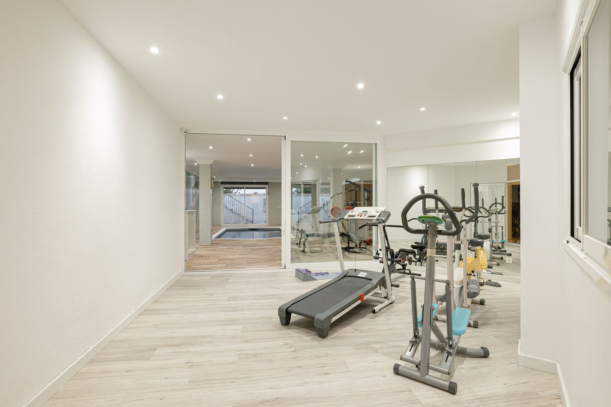 At the heart of the home is a modern, designer kitchen that combines style and functionality, ideal for both casual family meals and sophisticated entertaining. The villa is fully climate-controlled, with air conditioning and central heating throughout, ensuring year-round comfort.