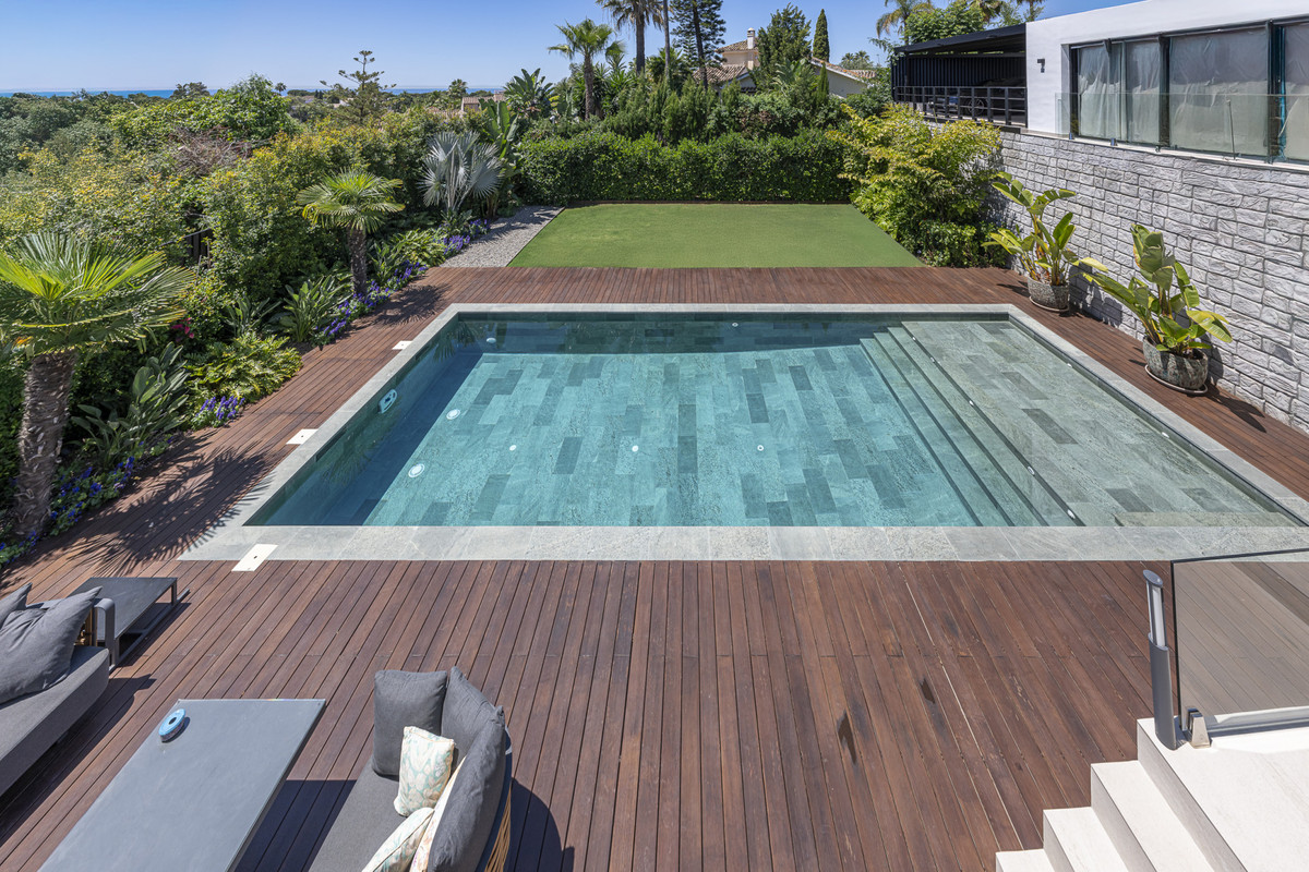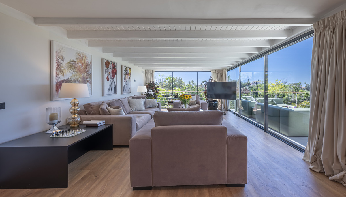 Presenting an exceptional villa in the sought-after El Rosario Urbanization on the esteemed Costa del Sol. This meticulously renovated property epitomizes luxury and stands as one of the premier residential areas on the eastern side of Marbella.