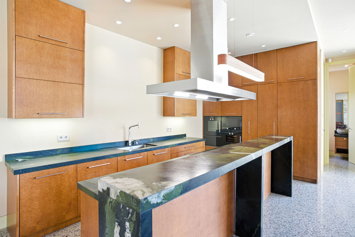 Also on this level is the master bedroom, featuring a walk-in closet, his and hers wardrobes, and a large en-suite bathroom. This floor offers stunning south and southwest views toward Marbella, providing breathtaking scenery from every angle.