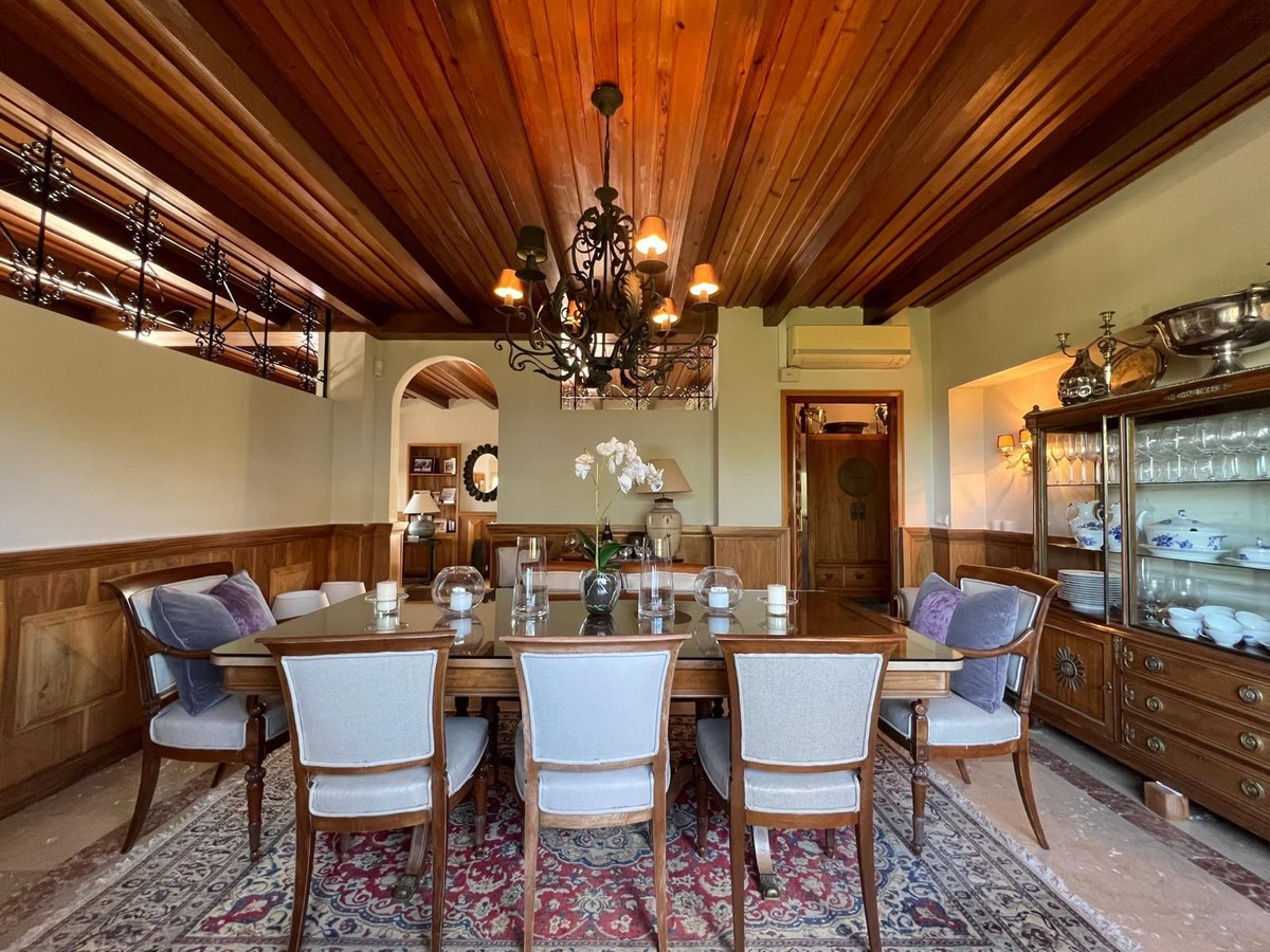 WE START WITH A COZY ENTRANCE HALL WITH IRON DOORS. THIS VILLA HAS A TOTAL OF 4 WELL DISTRIBUTED BEDROOMS AND 3 BATHROOMS, AN OPEN LIVING AREA WITH FIREPLACE CONNECTED WITH THE DINING ROOM. A VERY SPACIOUS KITCHEN WITH A SEPARATE SERVICE ENTRANCE. THE PROPERTY BOASTS A FASTASTIC COVERED TERRACE WITH ARCHES AND THE PRIVATE POOL OF 6X12 METRES.