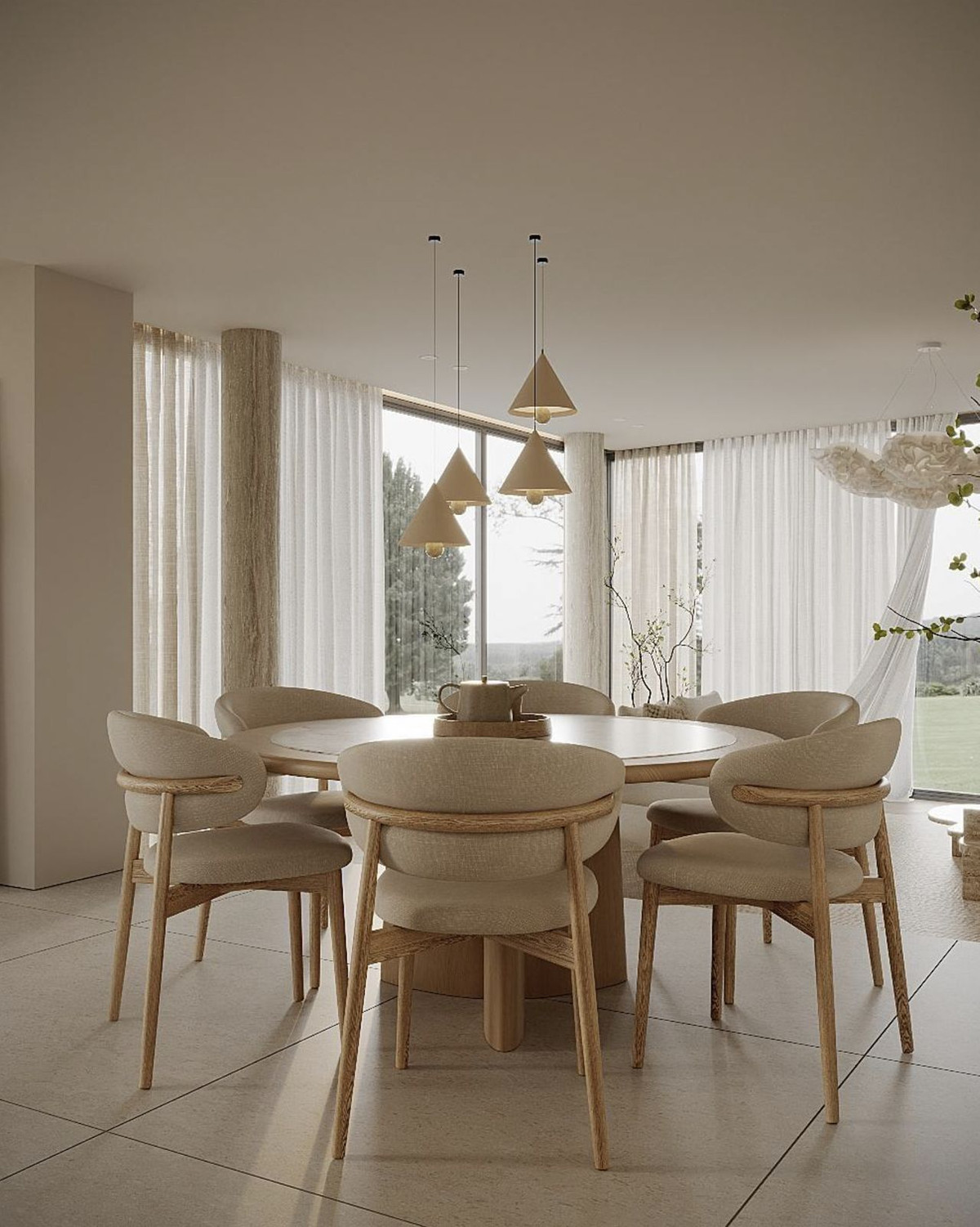 Blending modern Scandinavian style with the calm simplicity of Japanese design, the home feels both elegant and effortless. Large windows and open spaces bring the outside in, while the outdoor area is made for enjoying life, think an infinity pool, jacuzzi, and space to relax or entertain.