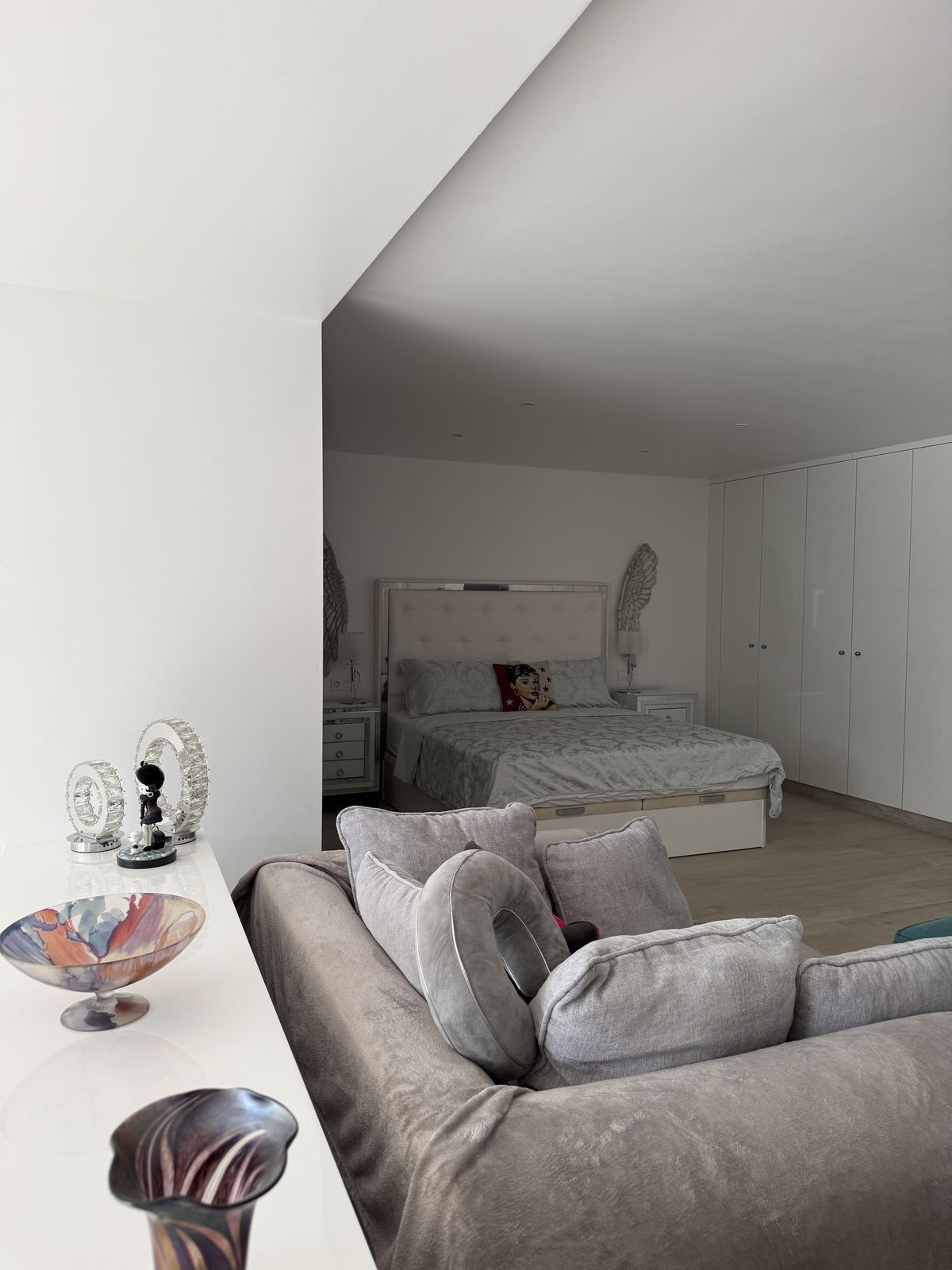Below the house, there is a separate apartment of 108.22M2, featuring a large open plan kitchen, a large shower room, an open-plan bedroom and living area, walk in wardrobe, and plenty of extra built in storage. The apartment downstairs has its own entrance. You have bi-folding doors onto a large private terrace. The property doesn't have a pool, but there is a license for a pool, so you do not need to apply for one. The large store room / double garage at the front of the house has been enclosed, but the wall can be opened up very easily. At the entrance to the house you have electric gates and parking for 3 to 4 cars, the garden has some fruit trees and large hedges which gives you total privacy, the garden has been left for someone to put their own touch on to make it more personal especially if you want to have a pool, it is a blank canvas, super house and renovated throughout, 6 minute drive to Estepona port, lovely quiet location with super views to Gibraltar and the countryside.