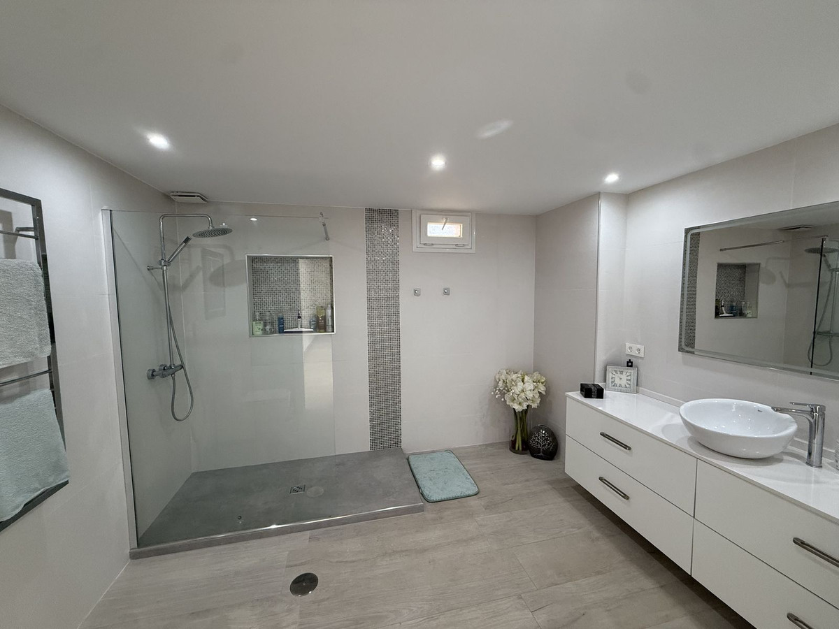 The house has been recently renovated throughout, in the main house you have 4 bedrooms, one bedroom is on the ground floor with a guest toilet, access to the main terrace from the bedroom, on the upper level you have three bedrooms, the largest of the bedrooms is approximately 30M2 with a wooden vaulted ceiling and lovely views looking out to the sea and Gibraltar, the second bedroom has a small glass terrace and again views to Gibraltar, shared shower room, the third bedroom has a walk in wardrobe plus extra wardrobes built in, en-suite bathroom that has a large shower and bath, high vaulted wooden ceilings, again this bedroom has a nice sunny terrace and views to the sea.