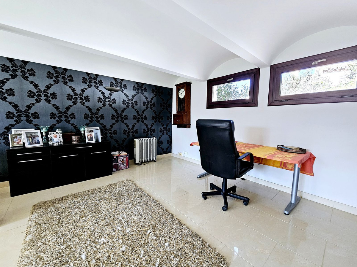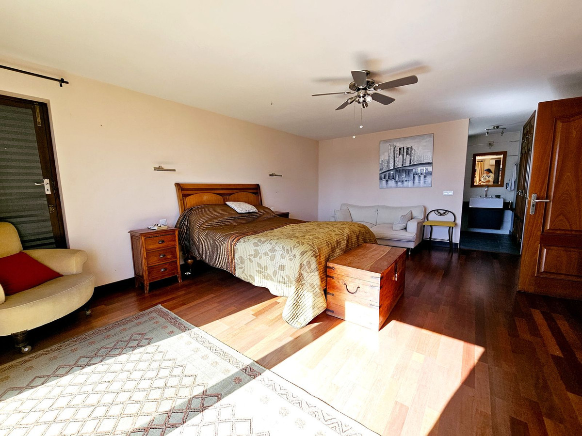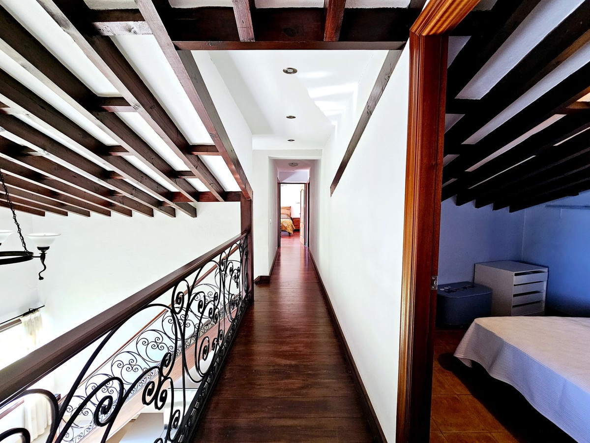Priced at €1575000 : This beautiful villa is located just steps from the long sandy beach and the promenade that takes you into Estepona town. The house is south facing and is located second line from the beach on a large, flat plot. The main house has 5 bedrooms, 3 large refurbished bathrooms, 2 sitting rooms with 2 fireplaces, a large open plan kitchen, dining area, all spread over two floors. There is a further guest apartment with separate entrance that would be ideal for staff, teenagers or guests. The 851m² plot is completely flat making the garden area 100% useable. The garden houses an extremely large swimming pool and lawn area, which is perfect for a family with children or pets. The villa is accessed via automatic gates, with a secondary door at the bottom of the garden for closer access to the beach. This property has maintained its Andalucian charm with beautiful wooden beams, vaulted ceilings, and traditional tilework. On entering the villa you are greeted by a beautiful Andalucian wooden front door that opens up into an entrance hall. To the right you will find a spacious and bright living room, office, one large bedroom and a full bathroom. To the left there is a second sitting room/TV area, a fully equipped, open plan kitchen and dining area which leads straight out to the covered and uncovered terraces and garden. Upstairs you will find the large master bedroom with ensuite bathroom, private terrace and private access to the gardens. There are three further bedrooms upstairs, one with a private terrace. All are large and share an oversized bathroom with bath tub and shower. There is an undeveloped space between two of the bedrooms that could easily be adapted into a Jack and Jill bathroom if a further bathroom is needed. All bedrooms have hot and cold air conditioning, Walking distance from the house you have a beautiful sandy beach, 2 supermarkets, shops, a pharmacy, restaurants and bars. There are 5 golf courses within a 5 minute drive. Estepona town is less that 4 mins by car, La Duquesa port just over 5 mins by car, Marbella and Puerto Banus are 20 mins away. Malaga airport is 40 minutes by car with handy access to the AP7.